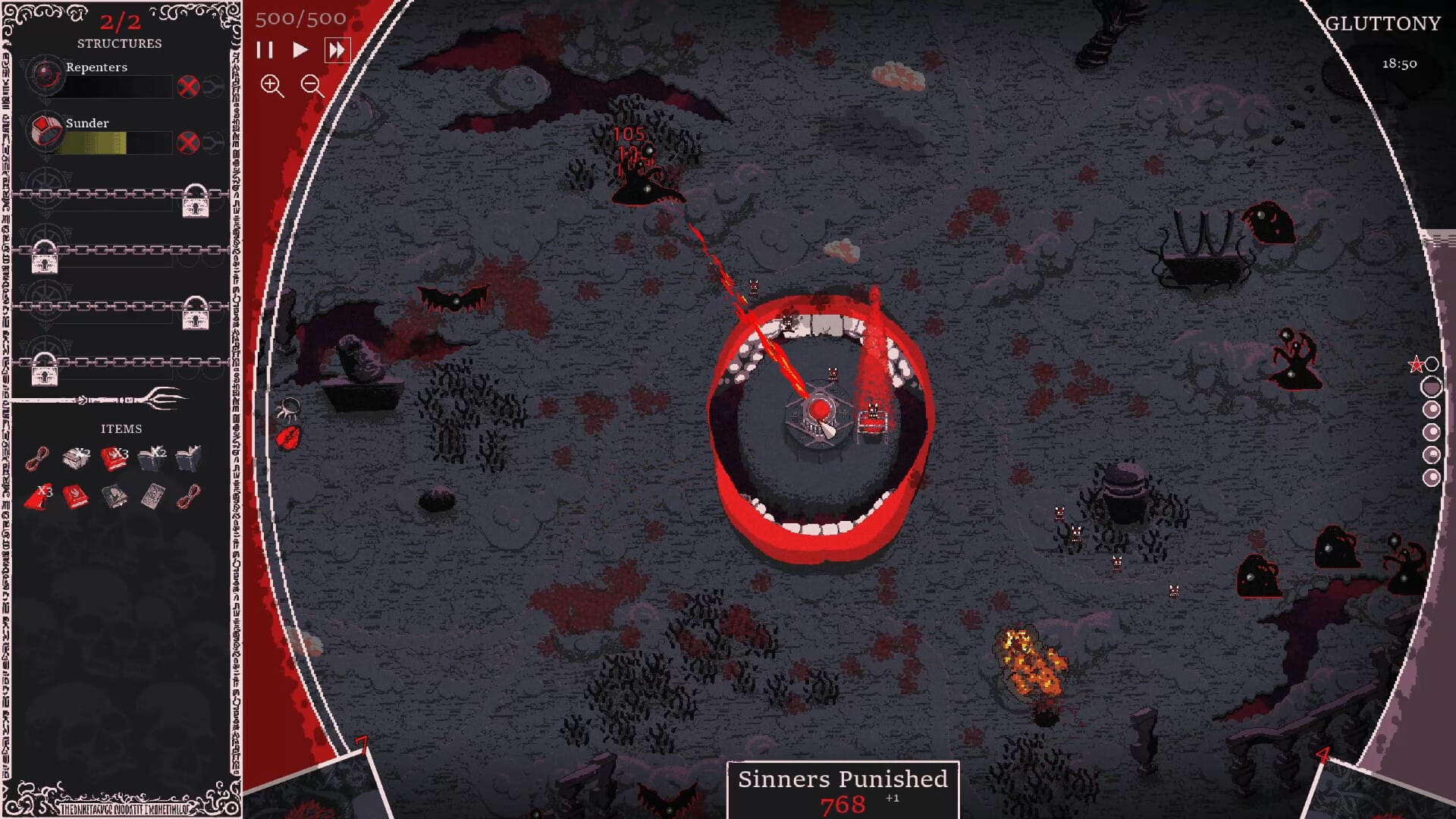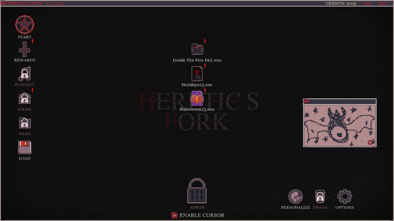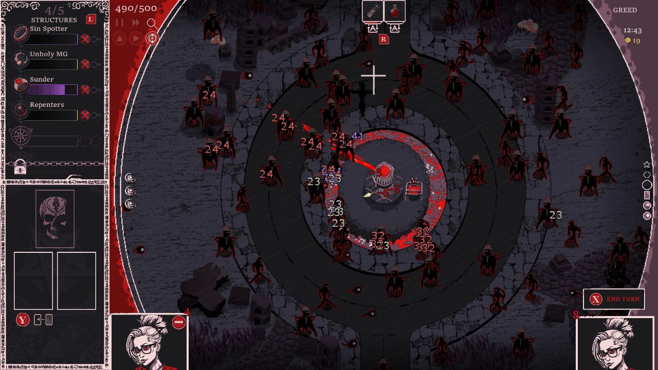 Votre rôle consistera non seulement à gérer les résidents actuels, mais également à mettre en Å“uvre des stratégies novatrices afin de rationaliser les opérations. Vous aurez pour mission de châtier les pécheurs à l’aide du système informatique dernier cri HERETIC’S FORK, développé par DeusVult Inc. Concrètement le principe de base est d’utiliser un ensemble de cartes aléatoires afin de défendre la tour au milieu de l’écran. Vous devrez donc améliorer vos cartes et combiner au mieux le deck pour augmenter les frappes destructrices de votre tour centrale.