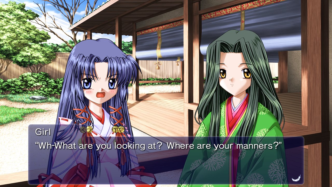 Pour rappel, comme sur PlayStation Vita, il s’agit d’une version améliorée qui contient également le spin-off Hatsuzora no Shou, permettant de découvrir plus en détail l’histoire d’il y a 1 000 ans racontée dans le jeu, avec un doublage complet en japonais. Les visuels sont également en haute résolution, les scènes illustrées ont été améliorées et il est d’ailleurs possible de les visionner au plus complet (dans les autres versions, elles étaient coupées par l’écran et il n’était donc pas possible de les voir entièrement). De plus, comme la plupart des autres titres de Prototype sur Switch, l’écran tactile est compatible, ce qui est donc idéal pour lire en mode portable.