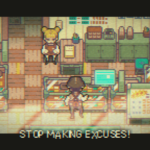 Goodbye World dispose de 13 chapitres où l’on suit l’histoire douce-amère et touchante de Kanii et Kumade. De plus, on peut jouer à un jeu de puzzle et de plateformes à l’intérieur de Goodbye World. Composé de 12 niveaux au total, il se nomme BLOCKS et on y incarne Kanii. Ce petit jeu à l’aspect nostalgique rappelle les vieux jeux sur portables. On trouve de mignons personnages ressemblant à des animaux qui cassent et empilent des blocs, avec des éléments rétro reflétés dans les contrôles et la musique. Au fur et à mesure que l’histoire progresse, on découvrira les secrets de BLOCKS. À noter que l’histoire est linéaire, il n’y a donc pas de choix ni de fins multiples.