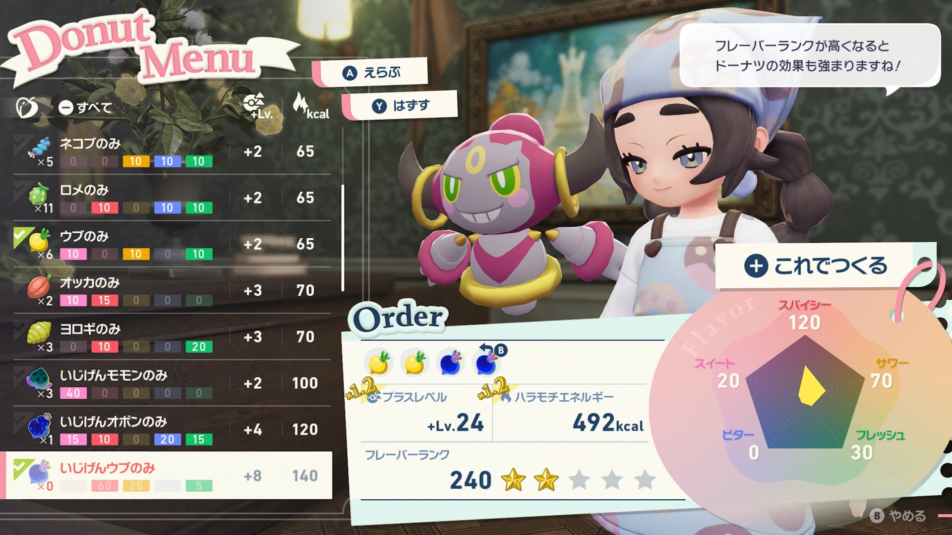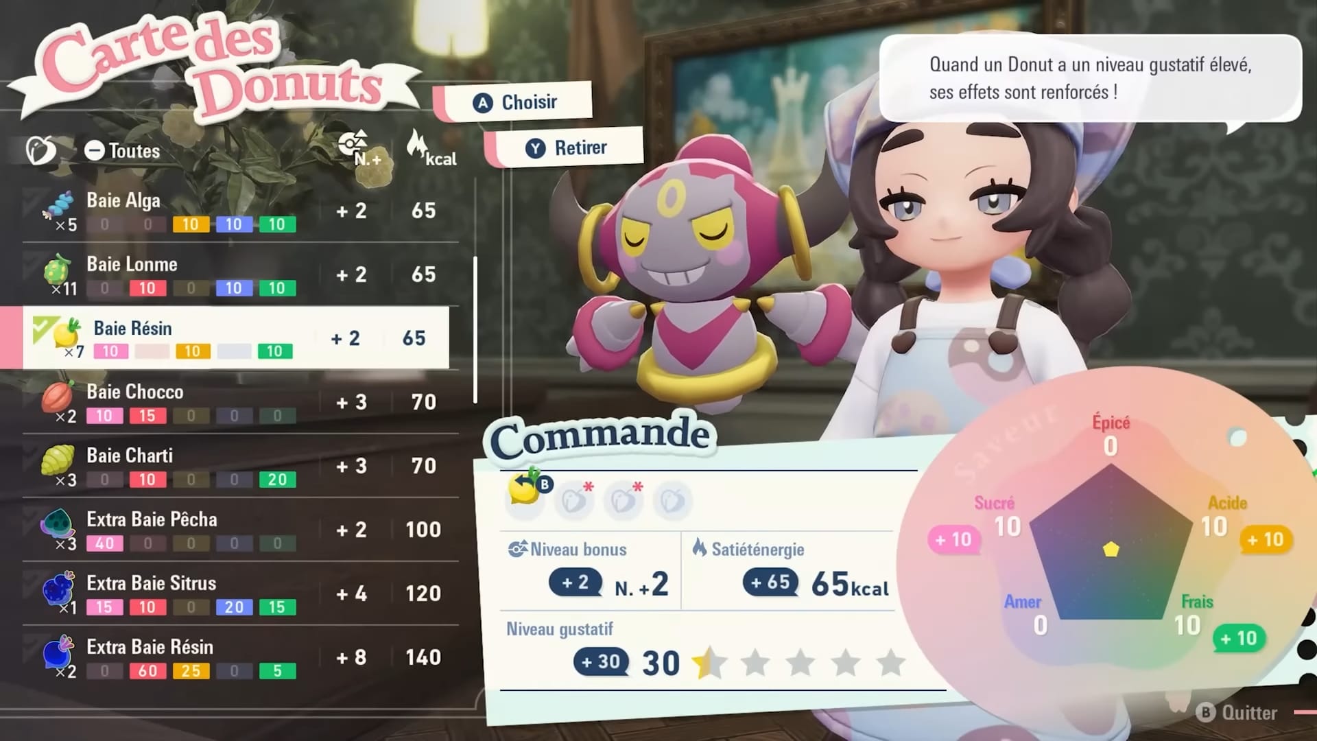 Selon les Baies que vous fournirez à Anya, celle-ci pourra préparer des Donuts particuliers. »