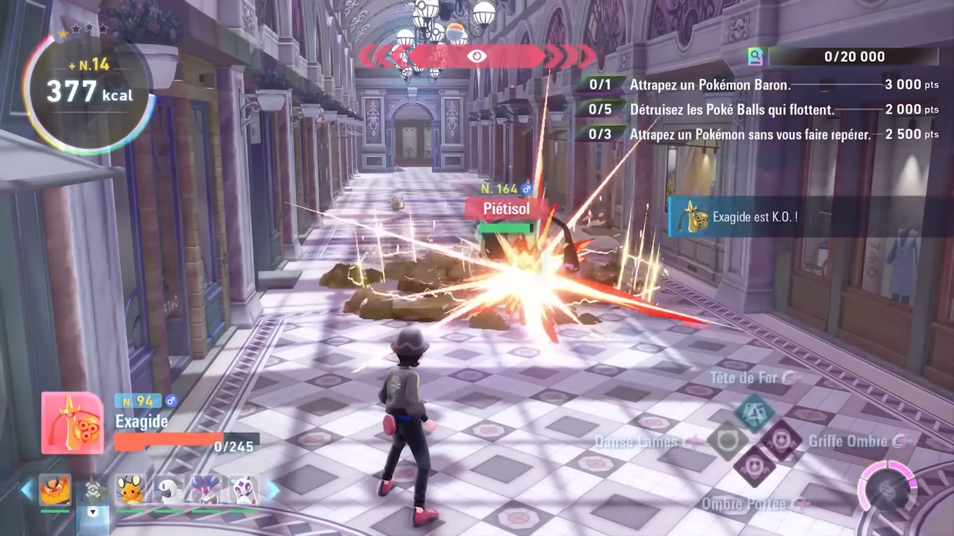 Les Naricâlines confèrent de nombreux avantages, comme le fait de capturer les Pokémon plus facilement, alors n’hésitez pas à escalader les échafaudages que vous trouverez un peu partout en ville pour réunir un maximum de Vis Colorées. »
