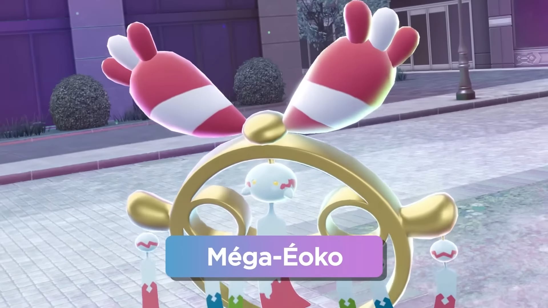 Deux nouvelles Méga-Évolutions du DLC ont été révélées à l’heure actuelle : Méga–Éoko et Méga-Glaivodo. Quand Éoko méga-évolue, de petites répliques apparaissent et ondulent constamment autour de lui, même si aucun vent ne souffle. Lorsqu’Éoko pousse un cri, l’écho de ses répliques entre en résonance et crée ainsi une puissante attaque sonore capable de terrasser n’importe quel adversaire.