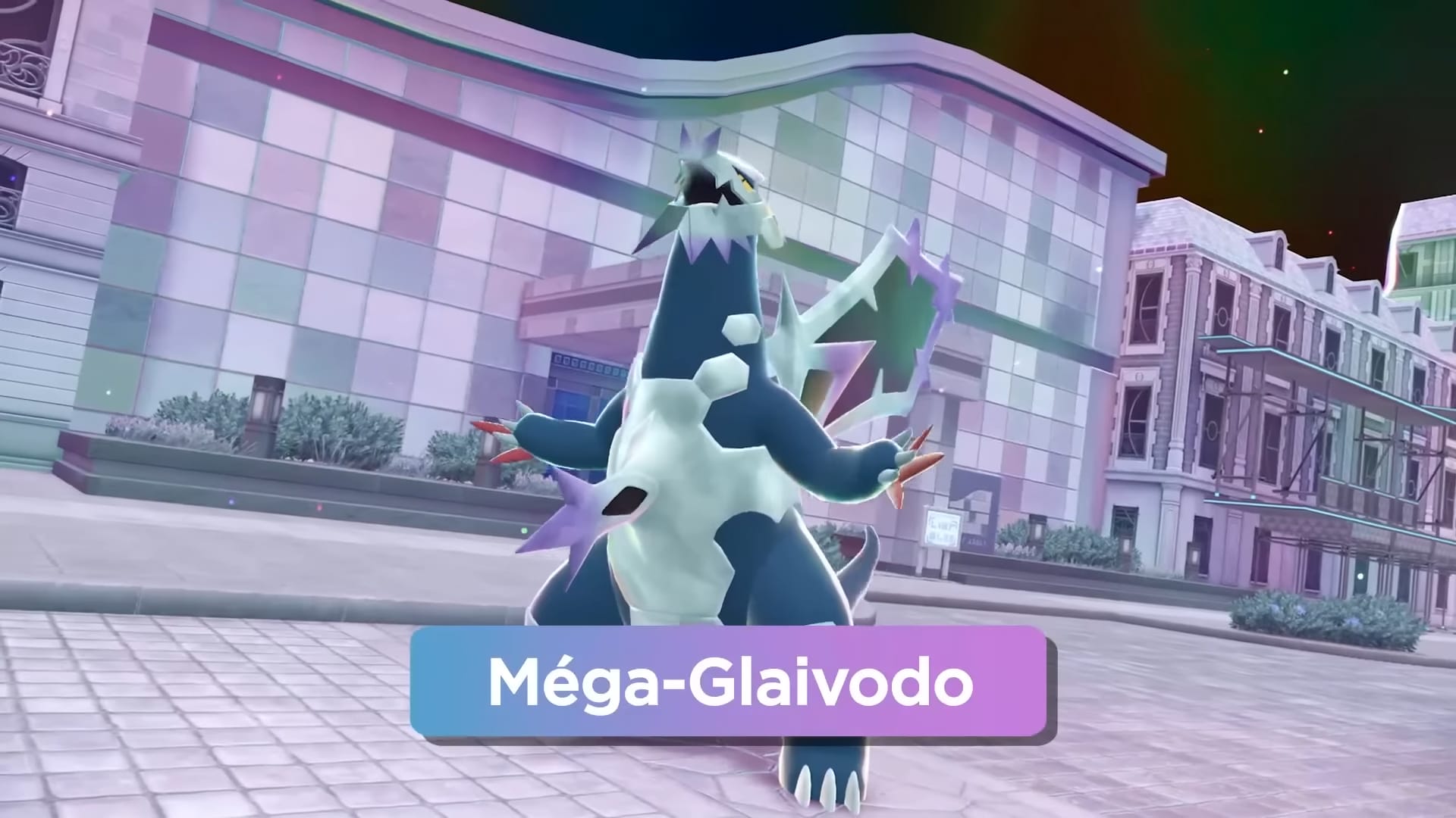 Concernant Glaivodo, il devient encore plus redoutable après la Méga-Évolution. Il peut générer encore plus d’énergie glaciaire et manier son immense lame dorsale qui a gagné en taille et en puissance. Rien qu’avec le poids de cette lame, il peut trancher ou écraser tout ce qui se trouve sur son passage. La Méga-Gemme qui permettra de faire méga-évoluer Glaivodo pourra être obtenue dans le Club de Combat Z-A, en guise de récompense à l a suite d’une promotion dans les combats classés en ligne. Cependant, Glaivodo apparaîtra exclusivement dans le DLC Méga-Dimension, comme Éoko.