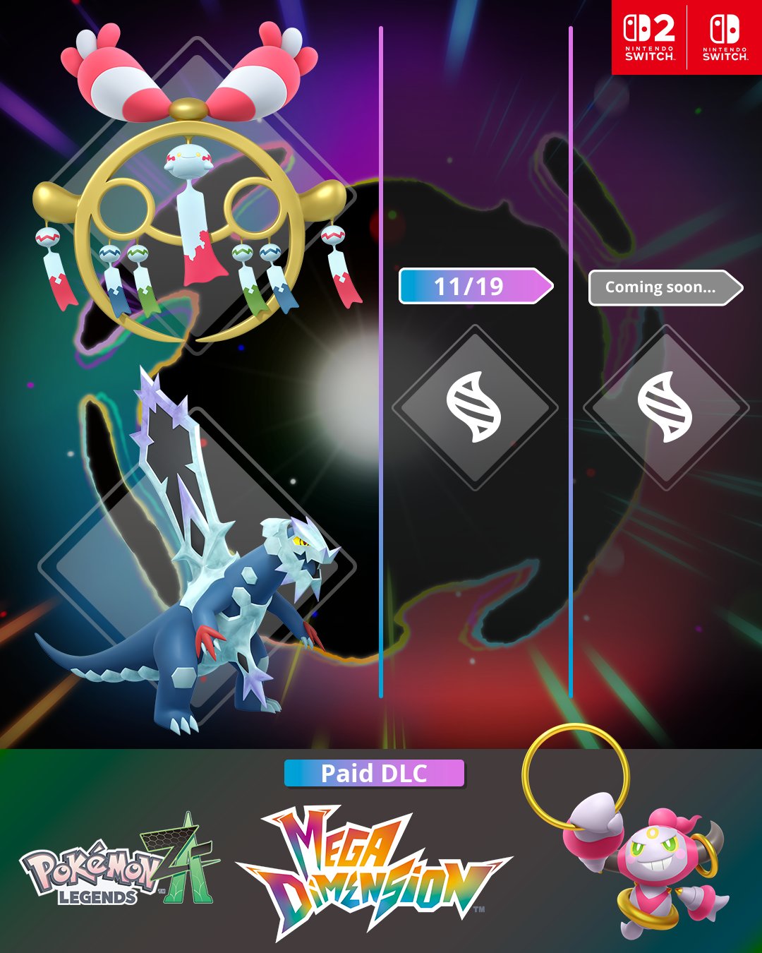 Après son annonce dans le Nintendo Direct du 12 septembre 2025, le DLC Méga-Dimension de Légendes Pokémon : Z-A sur Nintendo Switch et Nintendo Switch 2 a eu droit à une présentation en ce début de mois de novembre avec des informations, une vidéo et des images. D’autres détails seront divulgués dès le 19 novembre prochain ainsi qu’à une date qui n’a pas encore été précisée. On sait désormais que le scénario du DLC Méga-Dimension de Légendes Pokémon : Z-A sera disponible dès le 10 décembre 2025. L’histoire, des nouveautés au niveau du gameplay et d’autres éléments qui seront exclusifs au DLC ainsi que de nouvelles Méga-Évolutions ont été présentées. Game Freak, The Pokémon Company et Nintendo ont également annoncé un événement permettant d’obtenir Diancie et sa Méga-Évolution dans le jeu (sans que le DLC soit nécessaire). Par ailleurs, certains éléments du jeu de base qui n’avaient pas été montrés avant sa sortie ont été présentés. On récapitule tout cela dans la suite de l’article. Tout d’abord, voici la nouvelle bande-annonce générale du DLC :
