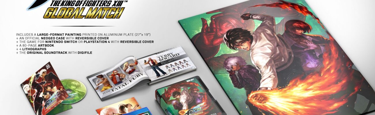 Peu de temps après la révélation de la date de sortie de The King of Fighters XIII : Global Match fixée au 16 novembre 2023, les Éditions Pix’n Love ont annoncé des éditions physiques du jeu sur Nintendo Switch et PlayStation 4, en partenariat avec SNK. Elles seront disponibles en précommande dès aujourd’hui, le 10 août 2023, à partir de 17:00 (heure française) sur la boutique officielle de l’éditeur/distributeur. Il y aura des éditions Standard (39,90 €), Collector (89,90 €) et Deluxe (249,90 €). Les premiers exemplaires de l’édition Standard comprendront une couverture réversible, les deux couvertures reprenant des illustrations de l’artiste Eisuke Ogura. L’édition Collector, limitée à 2000 exemplaires, comprendra une boîte officielle SNK NEOGEO, un artbook de 80 pages, 4 lithographies, la bande originale avec digifile et une couverture réversible. Enfin, l’édition Deluxe, numérotée à 250 exemplaires, comprendra tout le contenu de l’édition Collector ainsi que la reproduction de l’illustration principale du jeu réalisée par Eisuke Ogura sur plaque aluminium. L’expédition de l’édition standard est fixée à la même date que la date de sortie de la version téléchargeable, à savoir le 16 novembre. Cependant, il faudra attendre le 28 février 2024 pour les autres éditions.