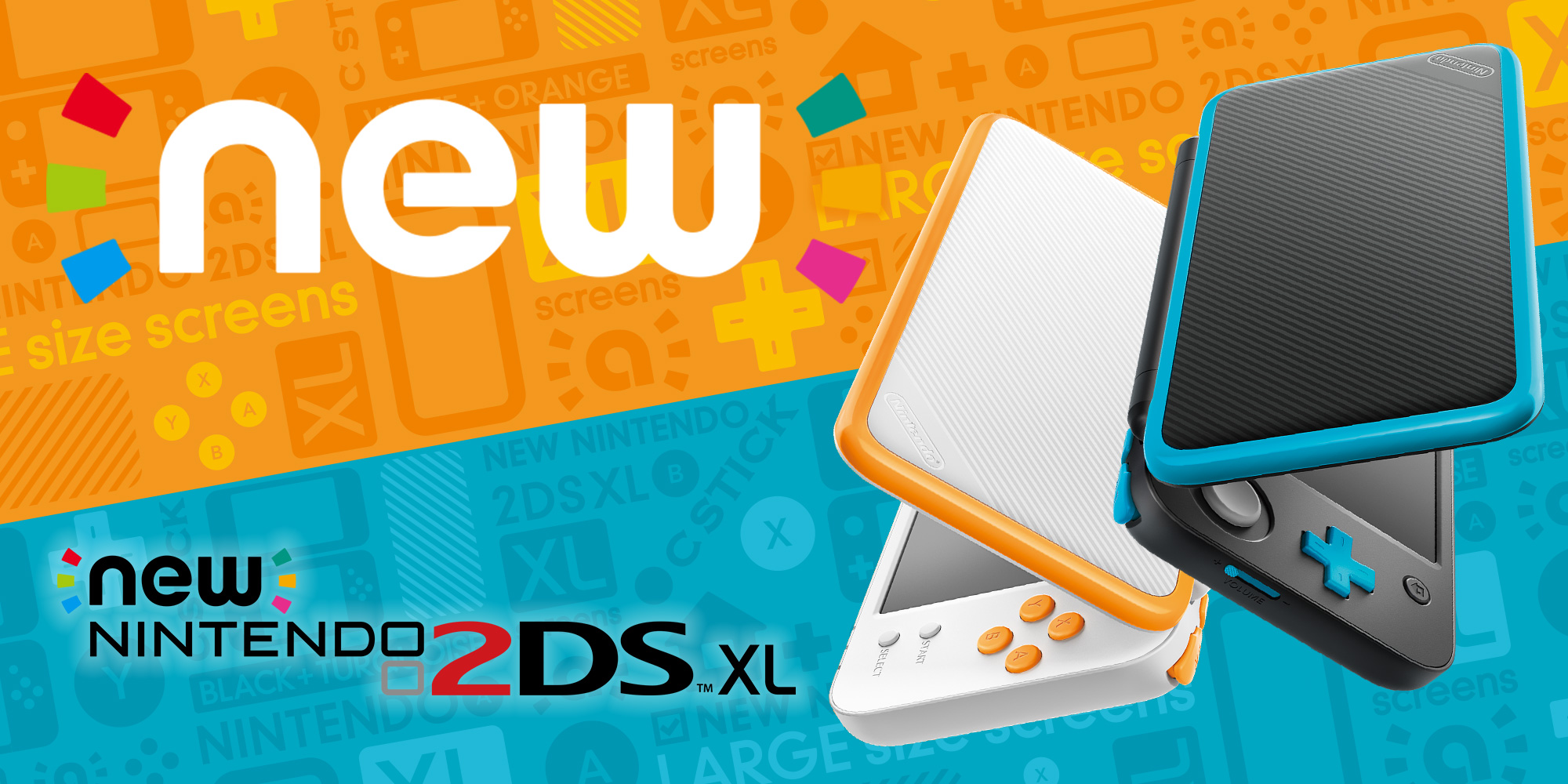 Contre toute attente, Nintendo vient d’annoncer un tout nouveau modèle de la 2DS : la New Nintendo 2DS XL. Elle sera disponible le 13 juillet au Japon puis le 28 juillet en Europe et aux États-Unis au prix de 149,99 $ / 14 980 yens. Elle aura les mêmes fonctionnalités que la New 3DS XL, à savoir le stick C, les écrans XL (82 % plus larges que ceux de la 2DS, soit très exactement 4,88 pouces), les boutons ZR et ZL, la puissance de traitement accrue ainsi que la compatibilité amiibo grâce à la fonction NFC directement intégrée. La console sera toujours zonée. Le poids sera de seulement 260 grammes (plus léger que la New 3DS XL).