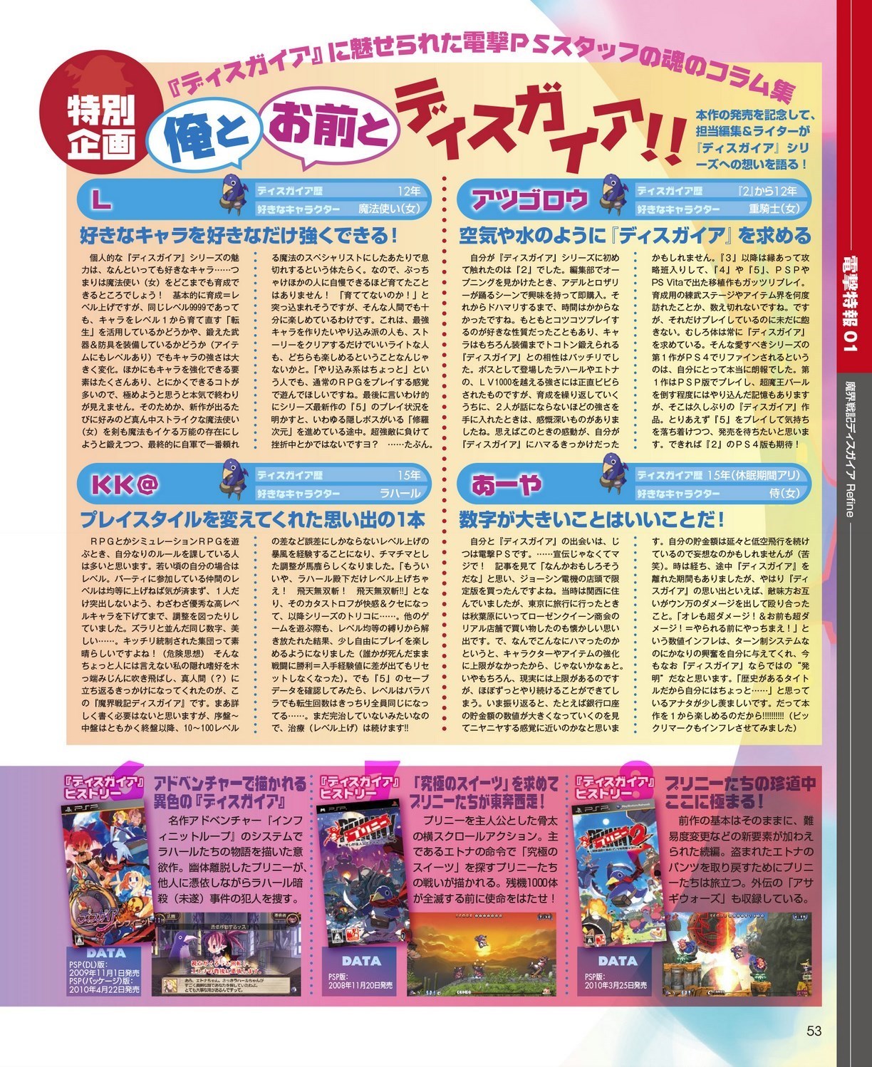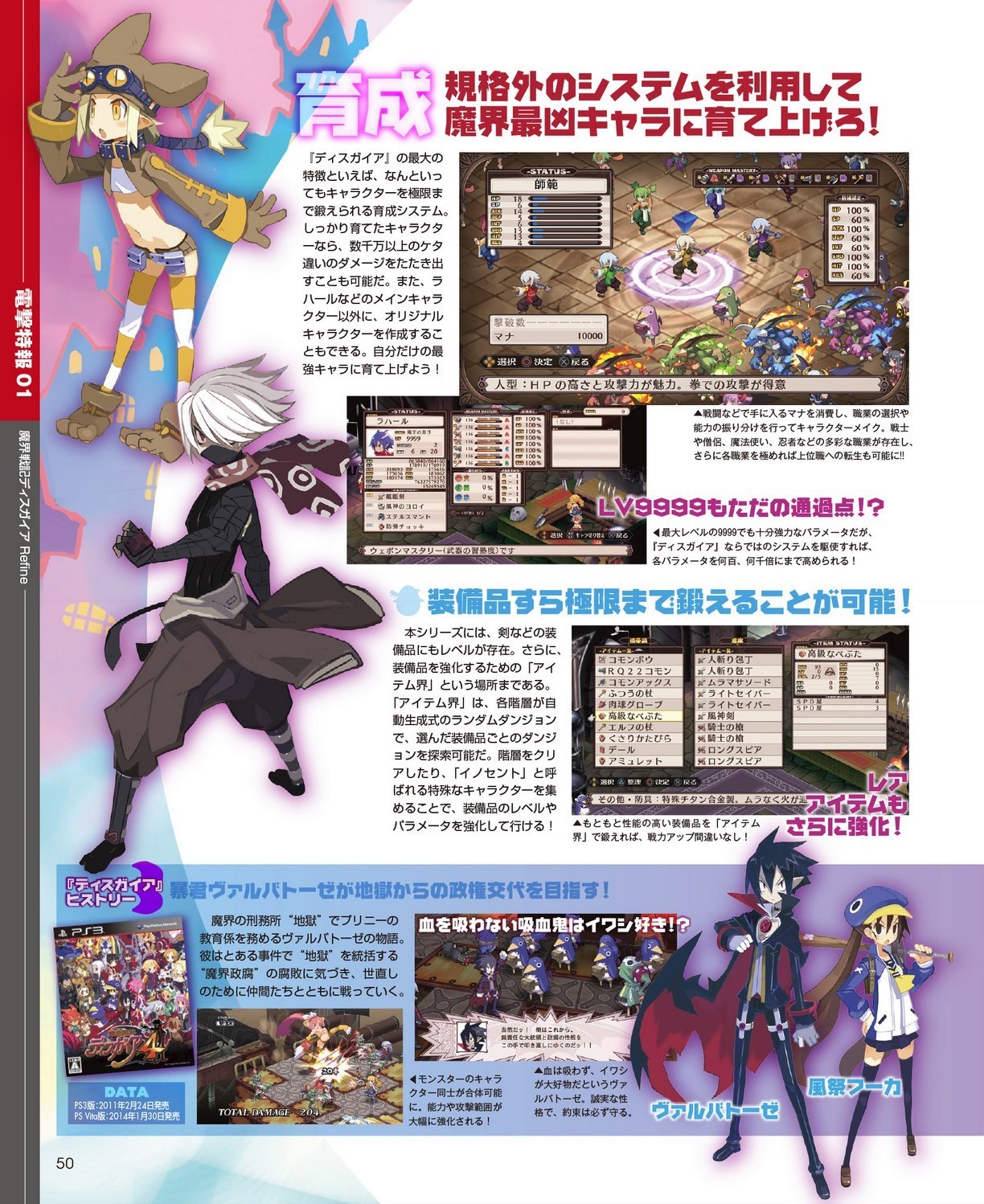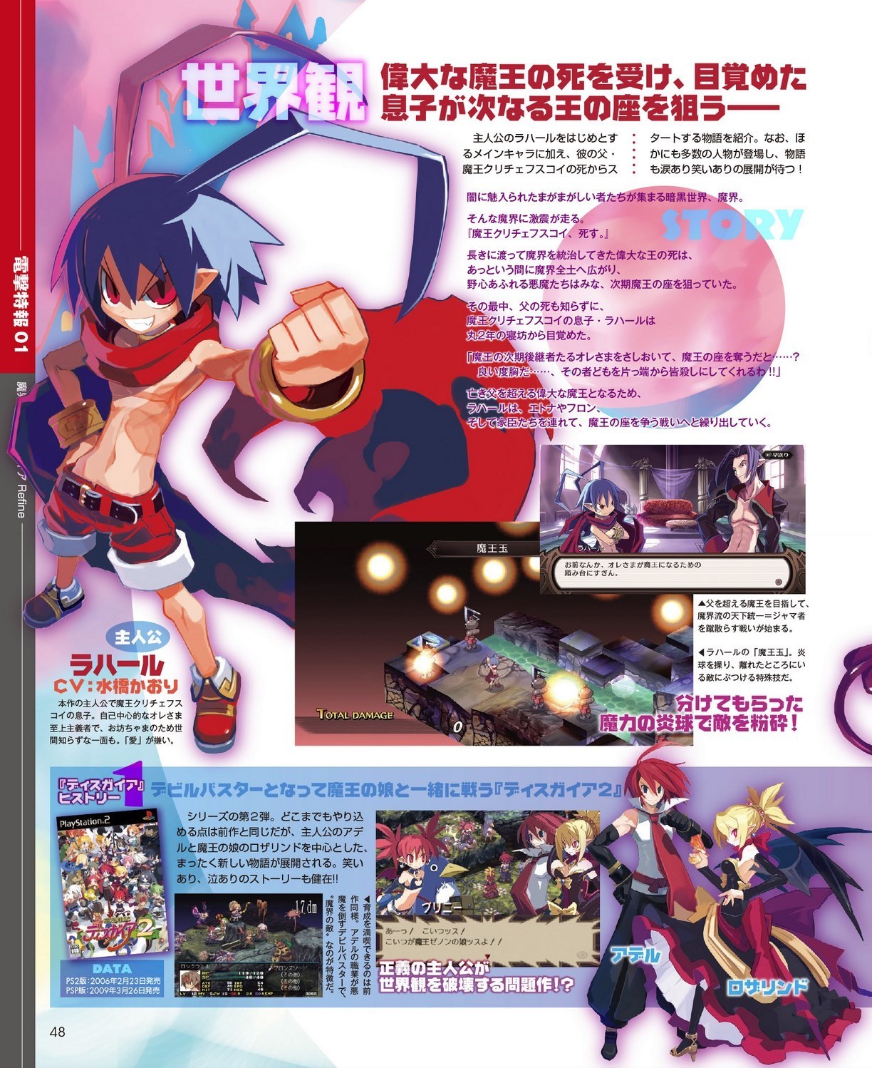 Mise à jour du 11 avril : nous avons désormais la confirmation via Dengeki Online que Disgaea Refine sortira bien sur Switch et PS4 le 26 juillet au Japon. Voici les scans de l’article de Dengeki PlayStation (toutes les images vienent bien de Disgaea Refine, sauf celles des bandeaux en bas des pages 48, 49, 50, 51, 52 et 53 qui font une rétrospective des différents épisodes de la série sortis sur consoles PlayStation) :