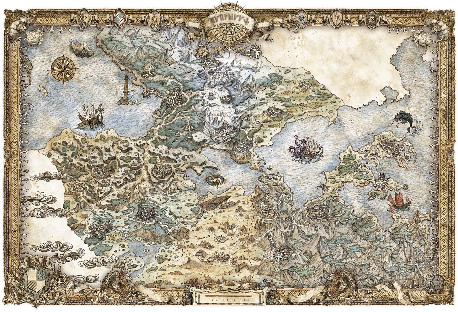 Pour finir, Francesca Baerald (que nous évoquions ici) a partagé la carte définitive d’Orsterra qu’elle a réalisée pour Octopath Traveler :