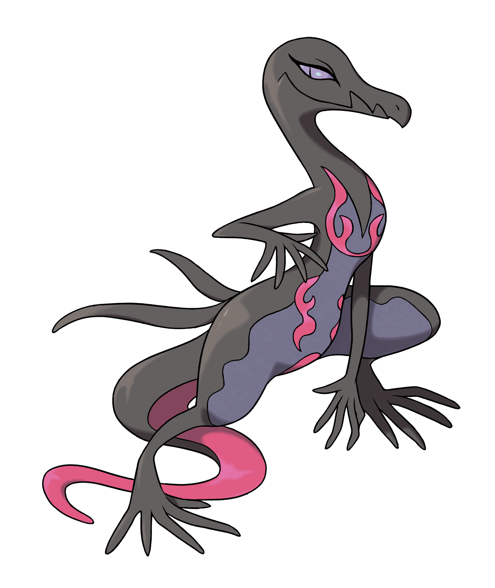 « Malamandre est l’évolution des Tritox femelles, des Pokémon rares dans Pokémon Soleil et Pokémon Lune. Le Pokémon Feu et Poison dispose de son talent unique Corrosion, qui lui permet, avec sa capacité Toxik, d’empoisonner gravement les Pokémon Acier et Poison, deux types normalement immunisés contre cette altération de statut. »