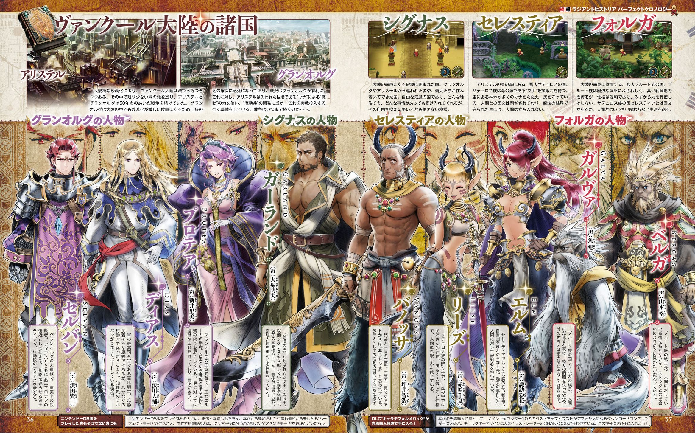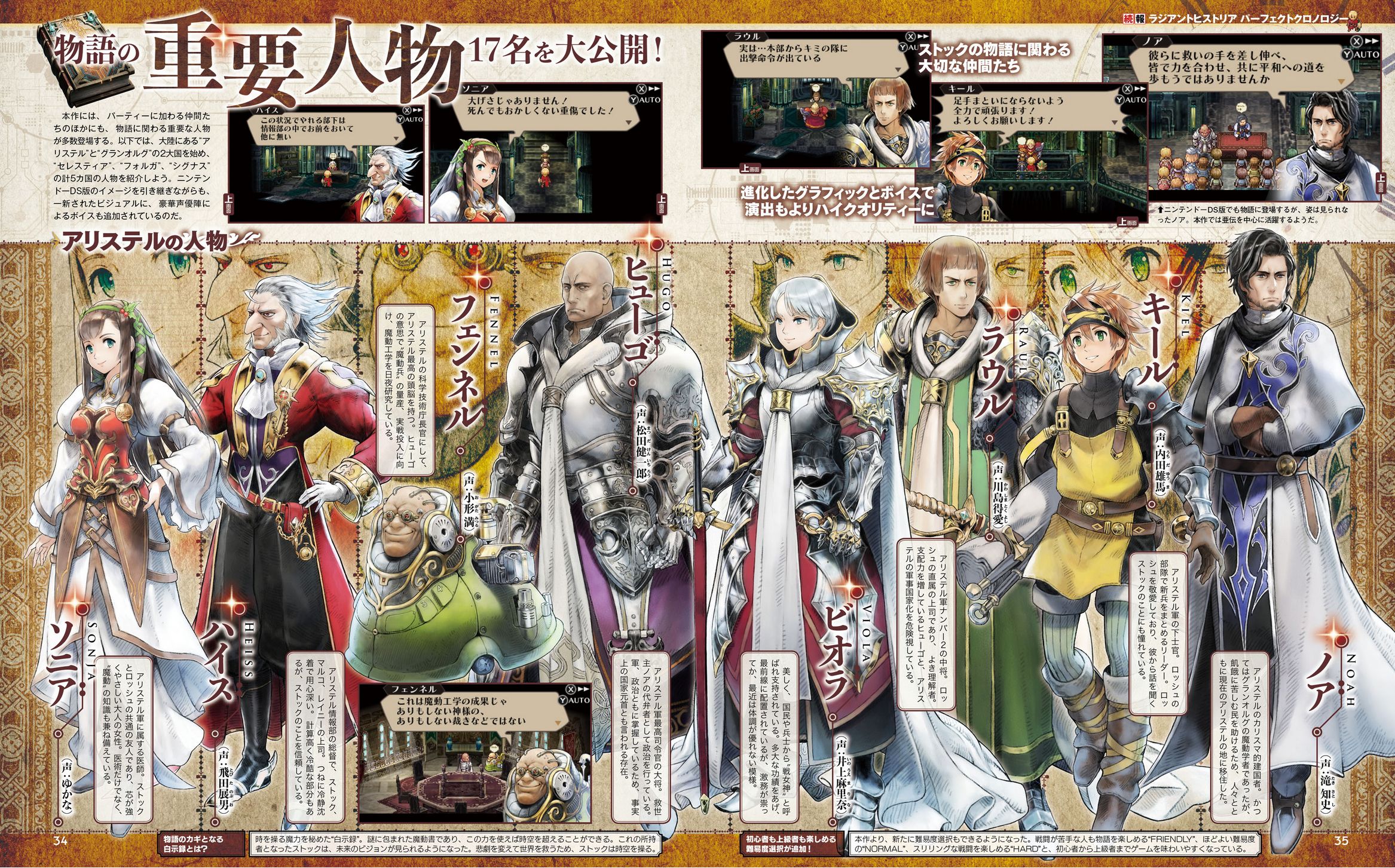 Les personnages secondaires de Radiant Historia : Perfect Chronology présentés dans les scans de Famitsu (de gauche à droite) :