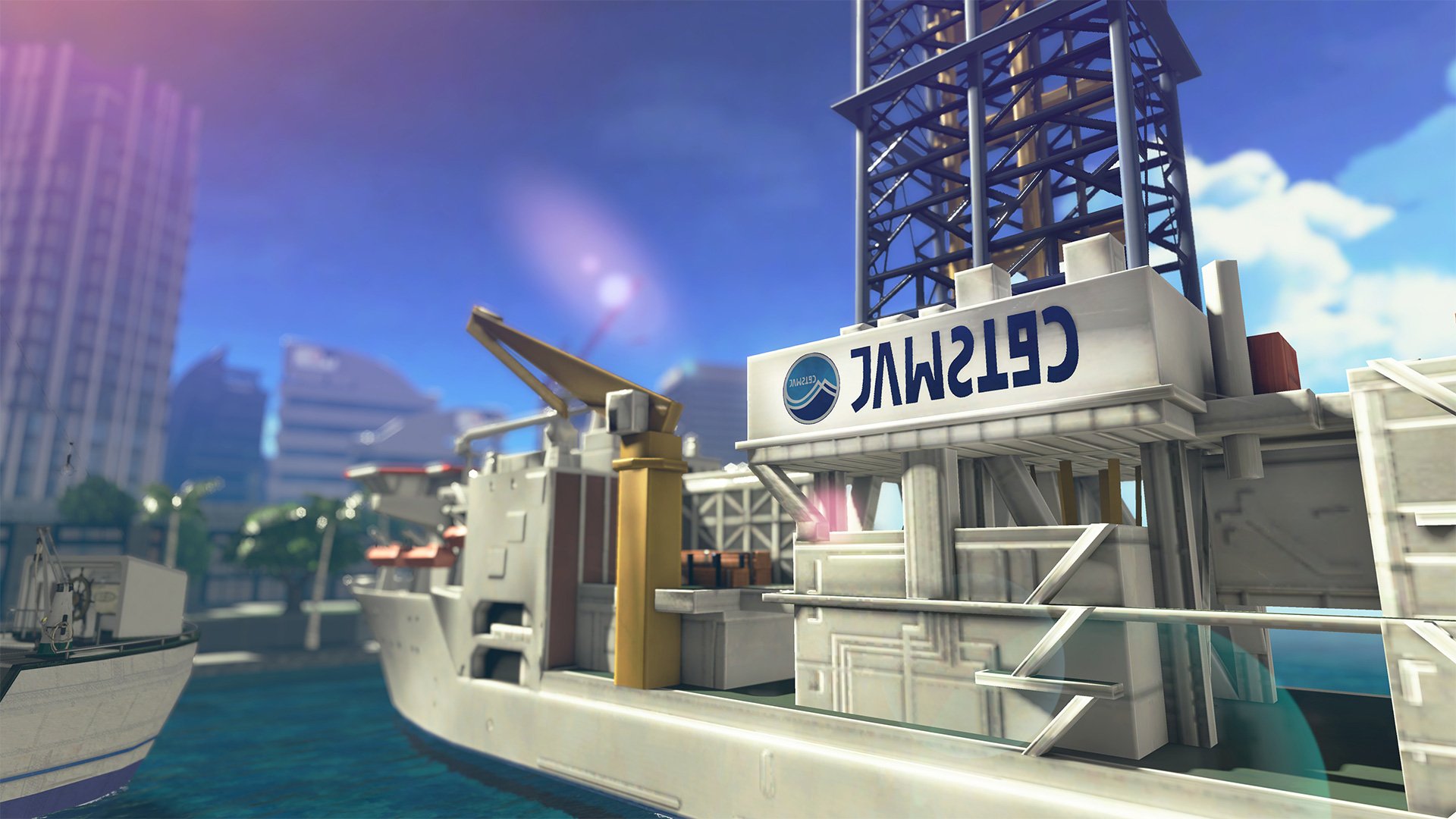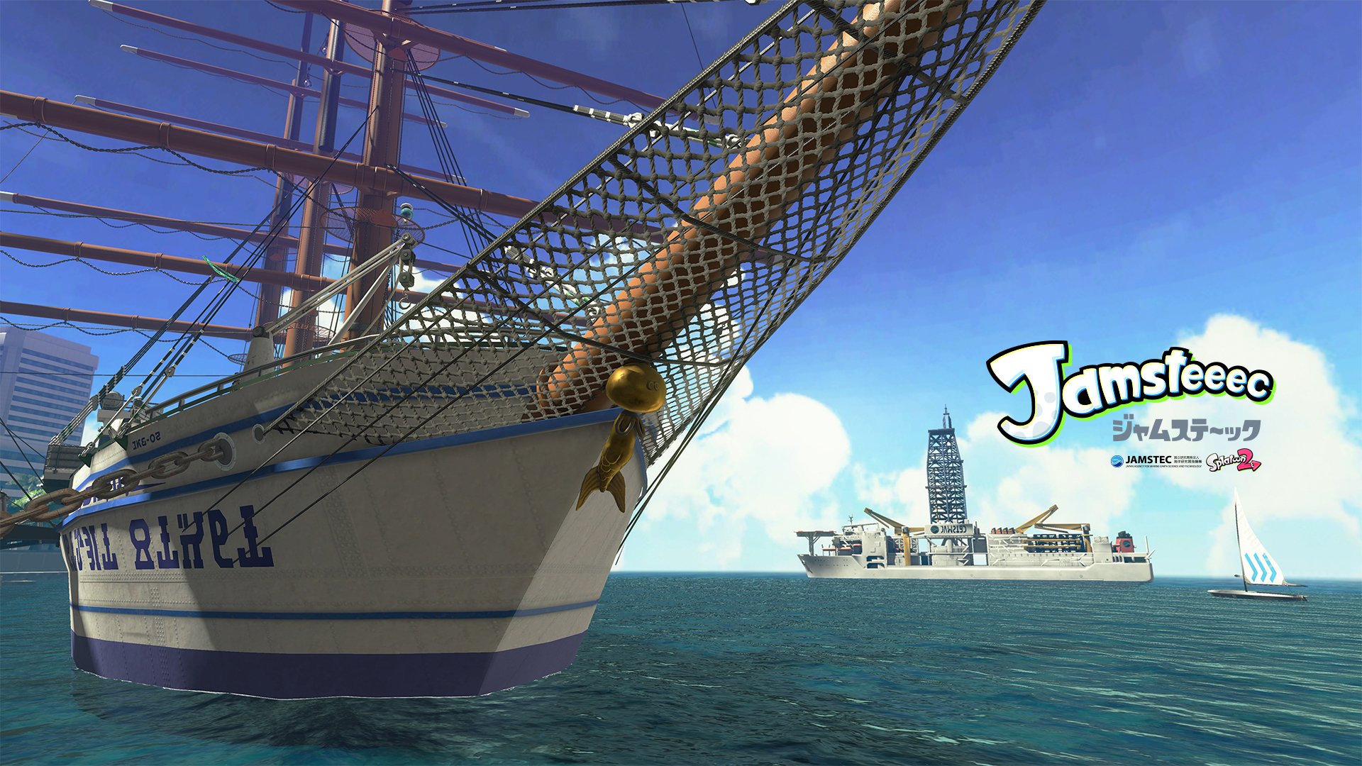 Nintendo et la JAMSTEC ont également montré un petit détail assez sympathique. Comme nous en parlions il y a quelques jours, un bateau inspiré du Chikyuu, un navire japonais de forage en haute mer a commencé à apparaître dans le stage Manta Maria. Vous l’aviez peut-être déjà remarqué auparavant, mais le logo qui apparaît sur le navire est directement inspiré de celui de la JAMSTEC :