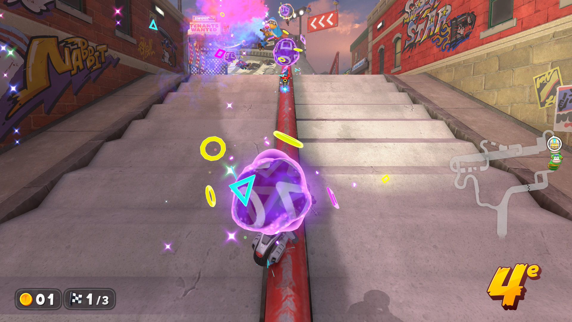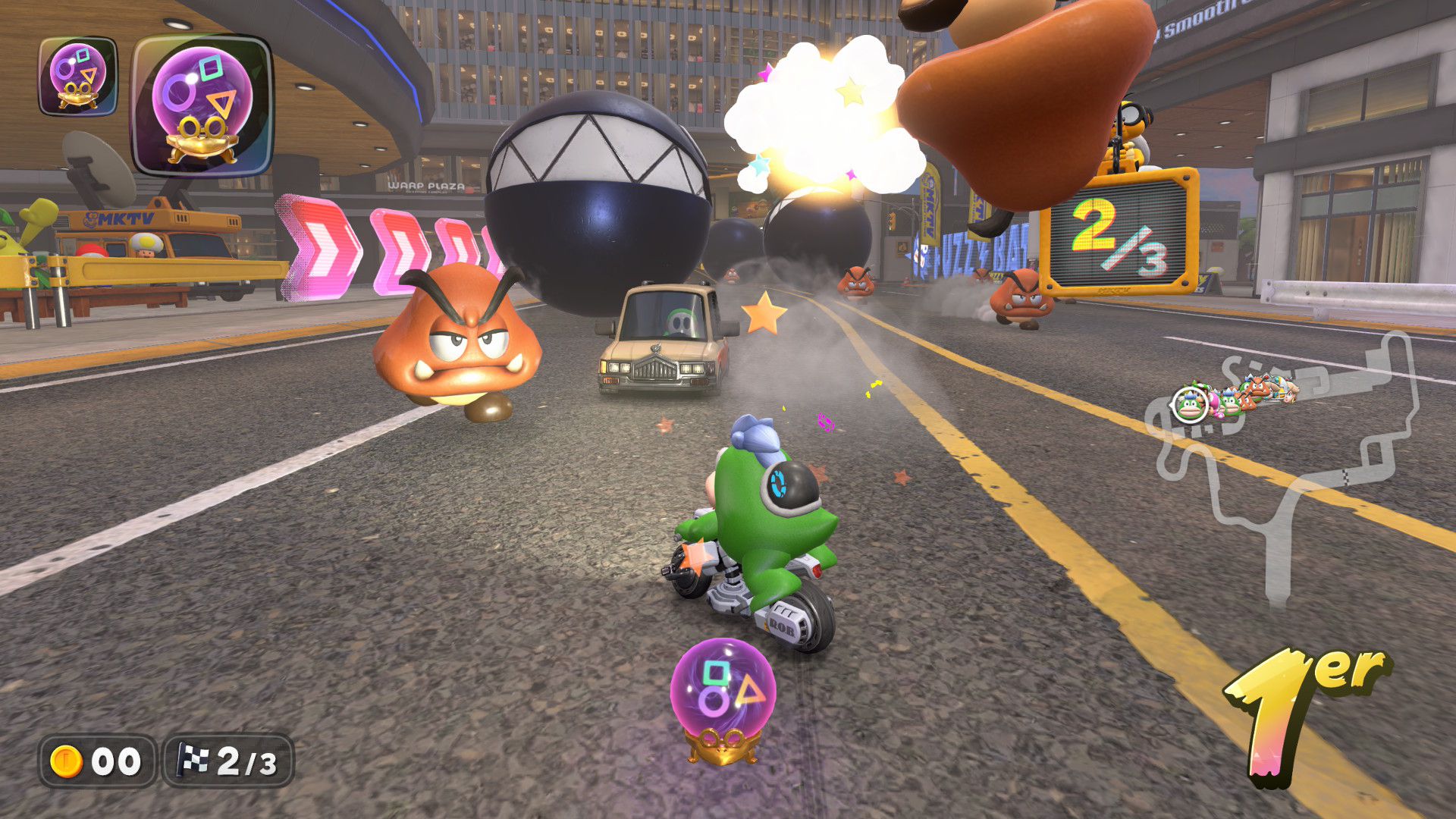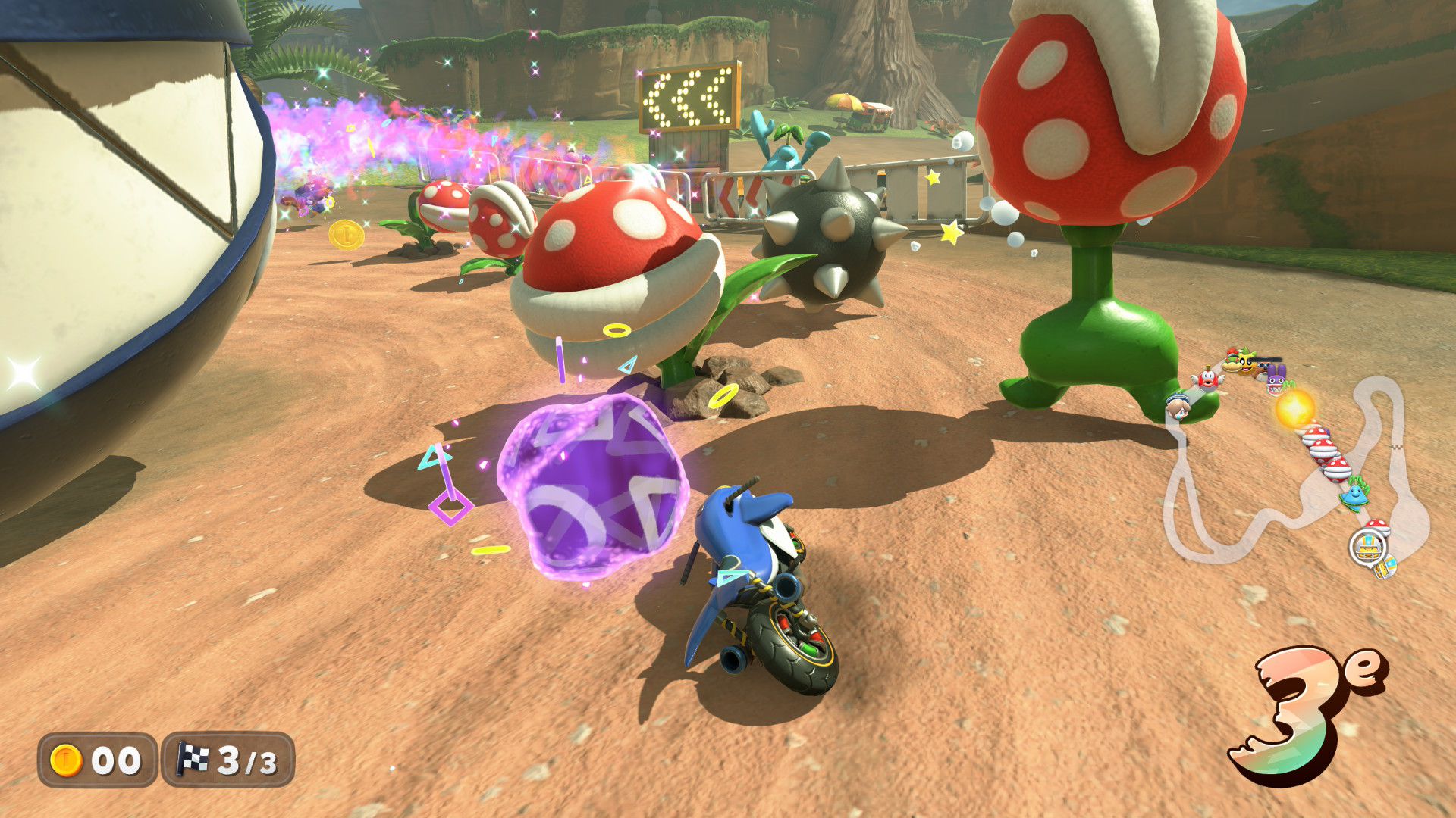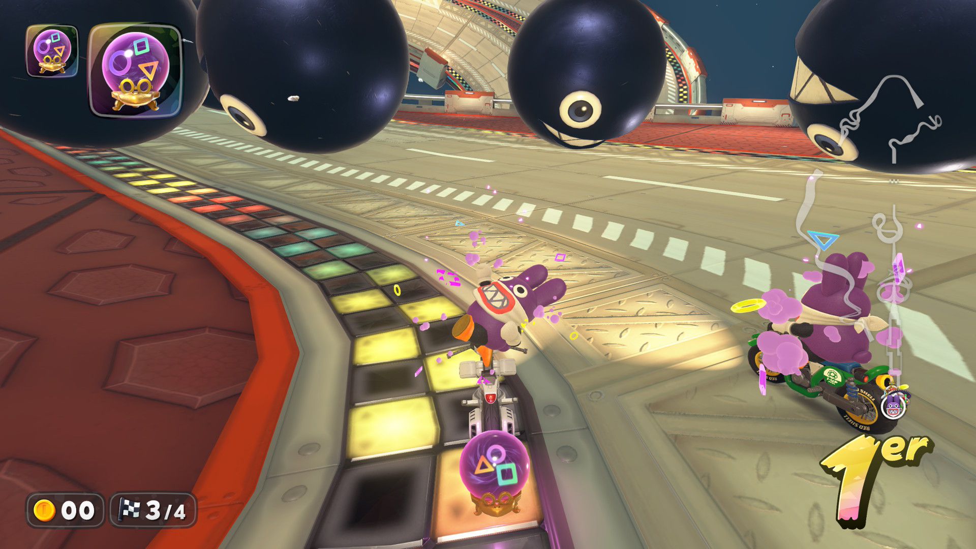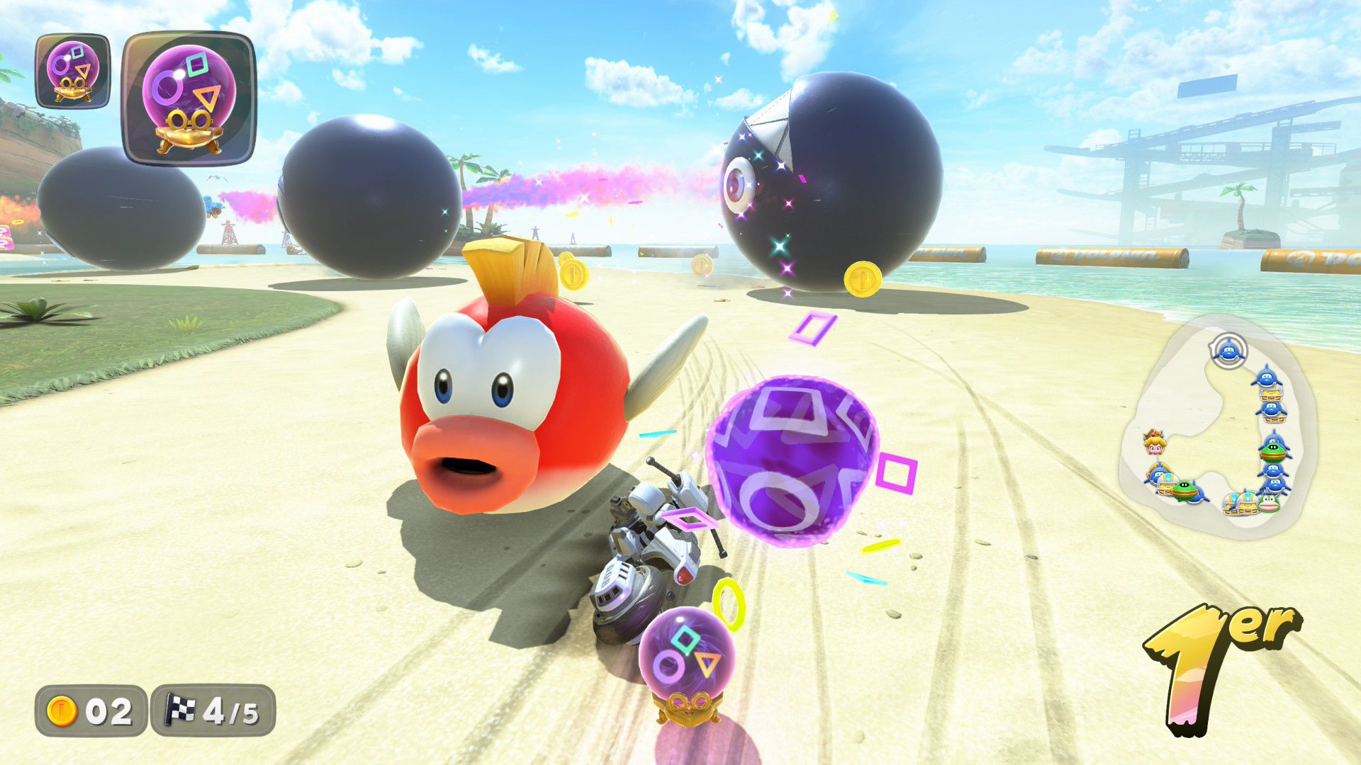 De plus, depuis la nouvelle mise à jour, on ne touche plus le Dranguille en se transformant en Bill Balle. Parmi les autres changements, désormais, on ne peut plus utiliser un deuxième Boo lorsque l’on en utilise déjà un, dans le cas où l’on en détient déjà deux. Aussi, lorsque l’on prend un snack turbo, le temps nécessaire pour que celui-ci réapparaisse a été réduit. Pour finir, lorsque quelqu’un prend une pièce placée sur l’eau, le temps nécessaire pour que celle-ci réapparaisse a été raccourci. Tous les détails sur les corrections de bugs se trouvent ici en anglais. Ils seront disponibles en français prochainement à cette adresse.