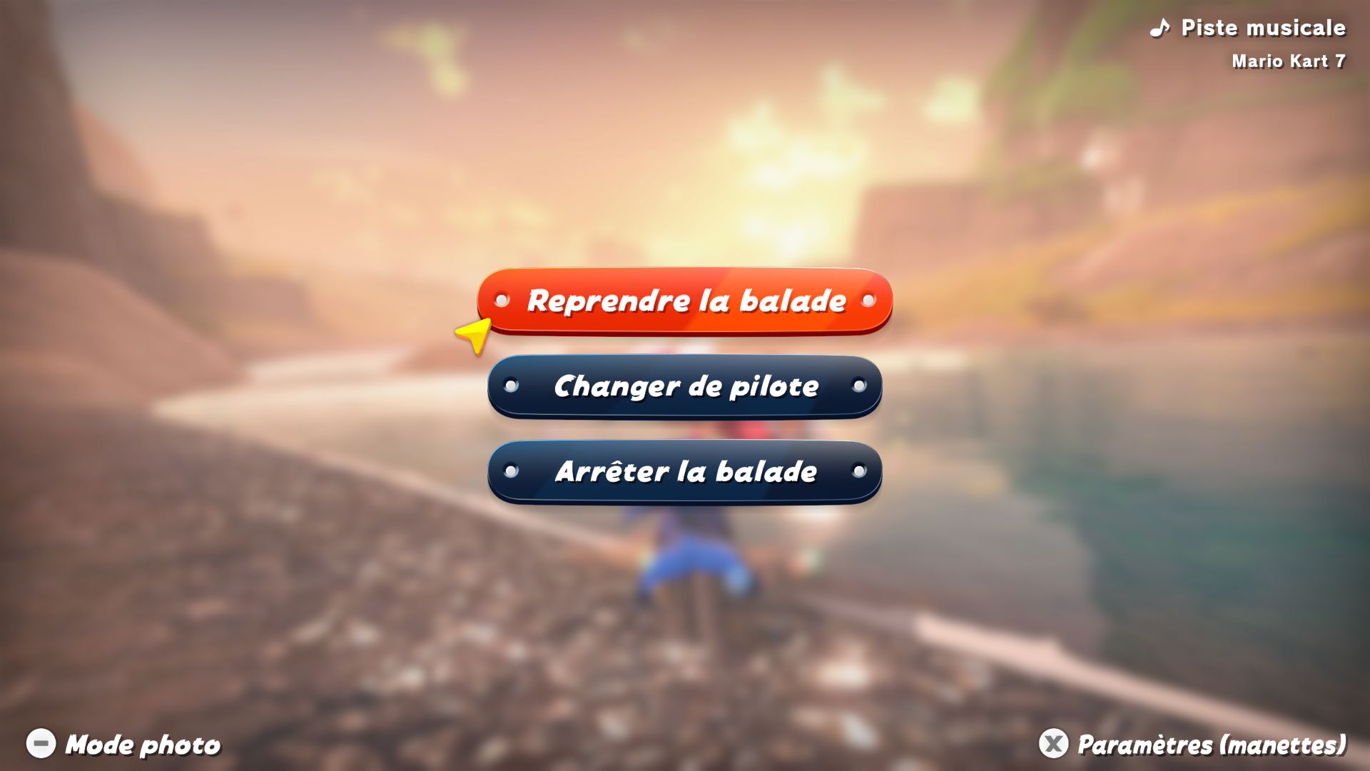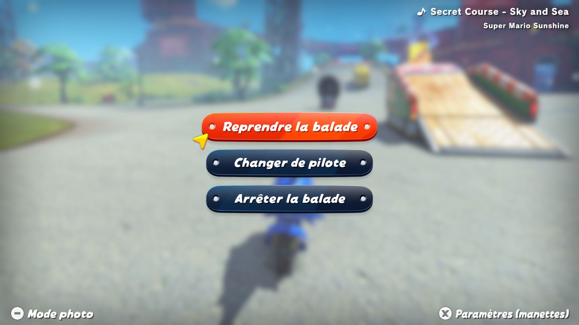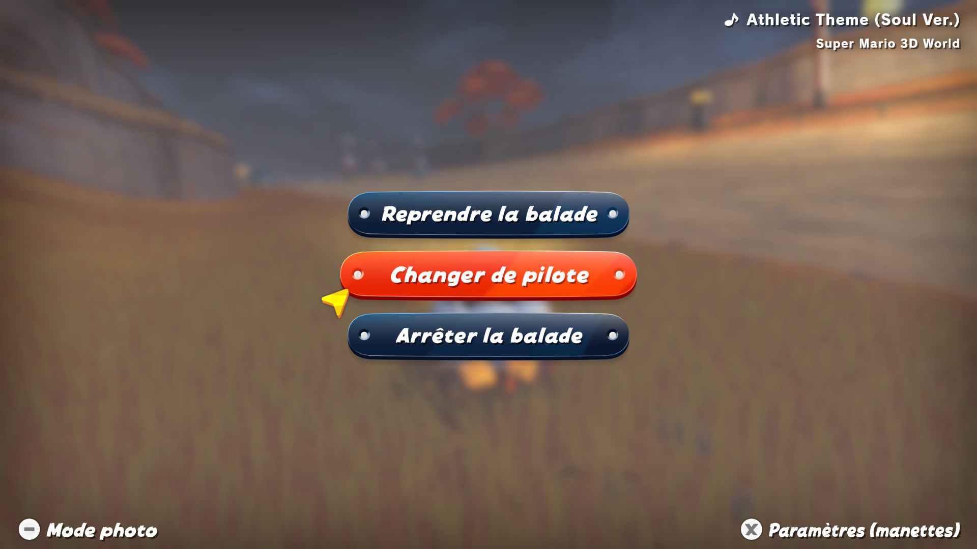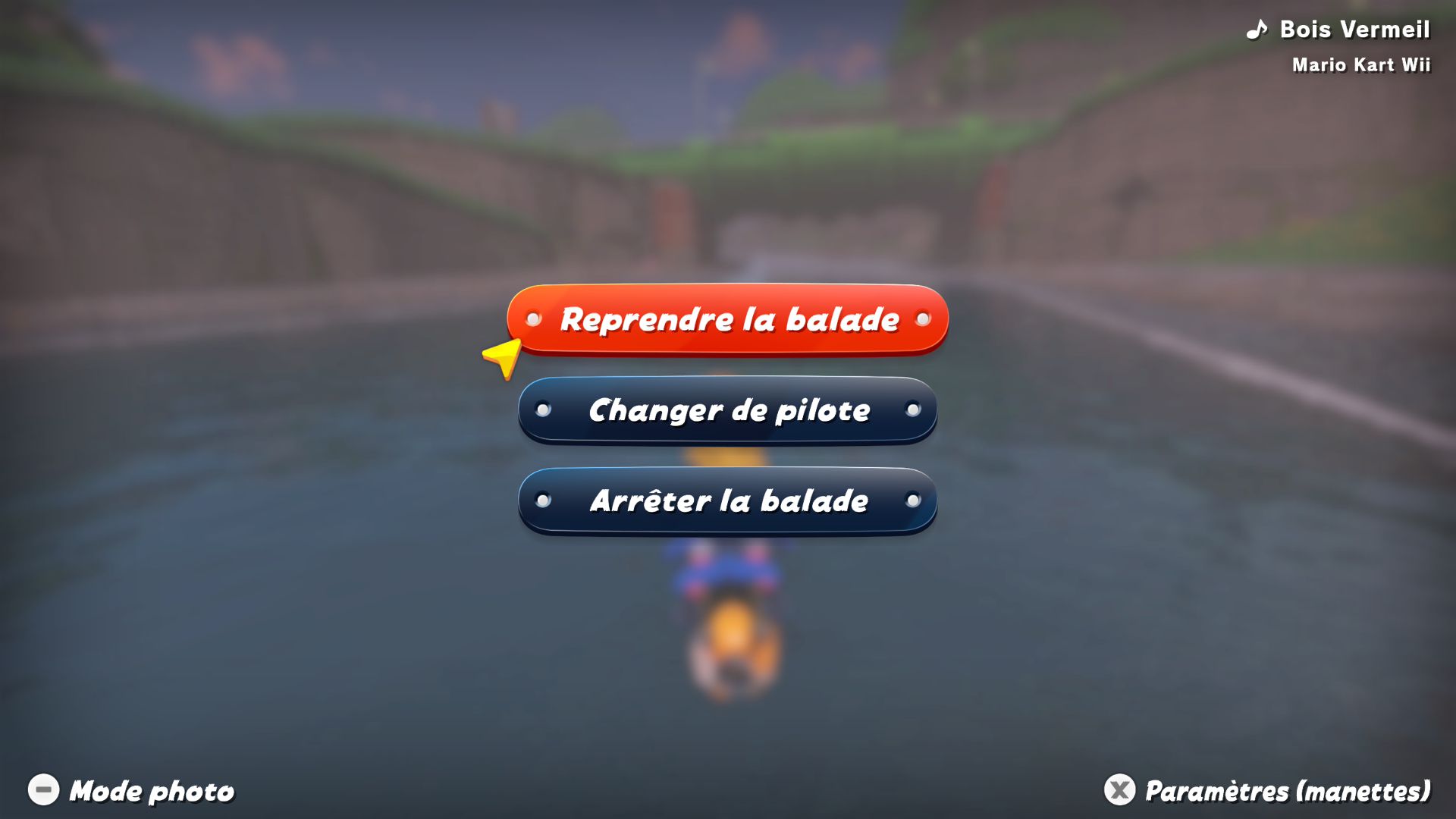 Désormais, dans le menu Pause, Mario Kart World affiche toujours le titre de la musique qui est en train d’être jouée. Cela est donc particulièrement utile dans le mode Balade, où l’on peut entendre de nombreux arrangements de musiques de jeux Mario en dehors de la série Mario Kart.