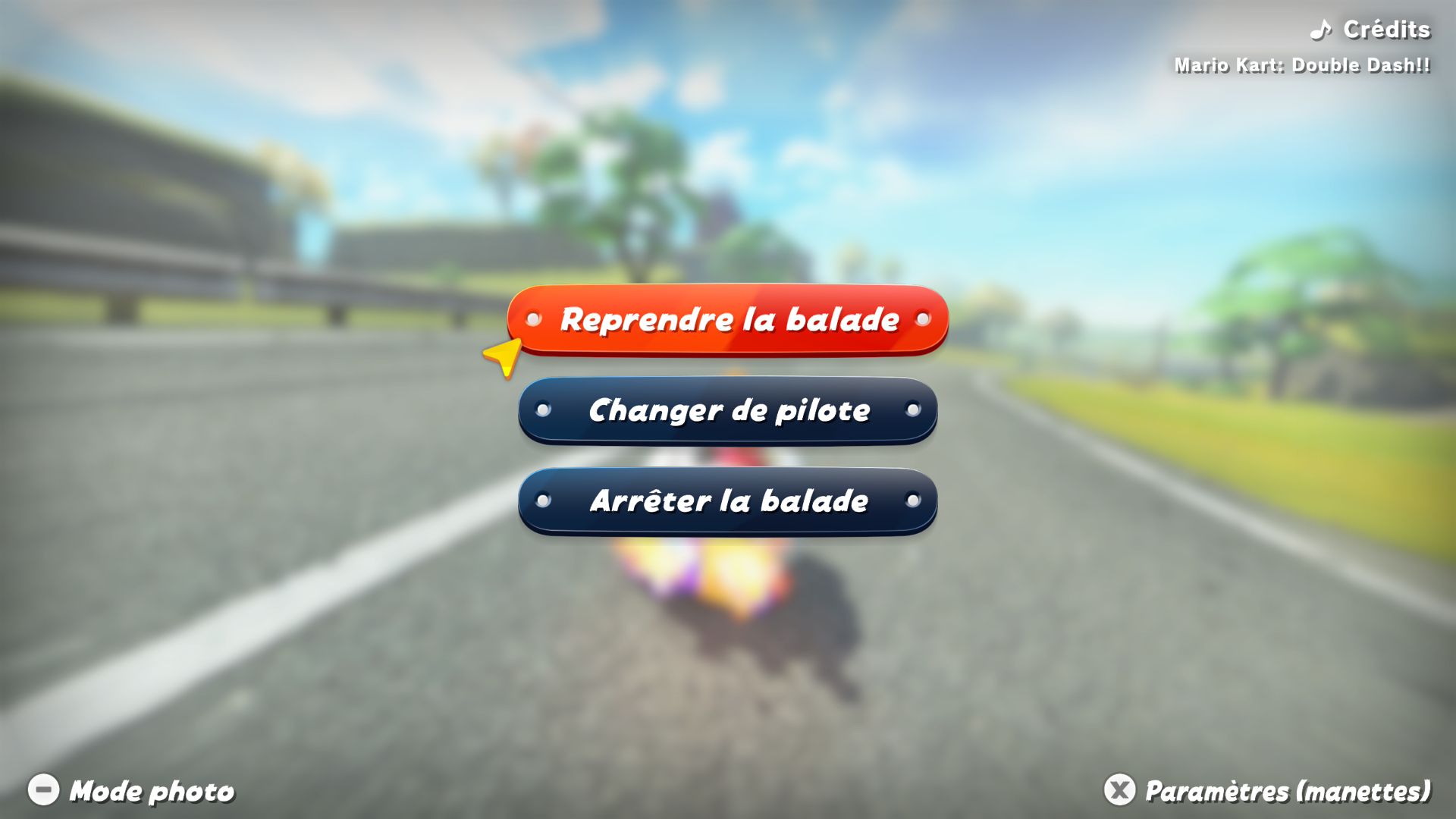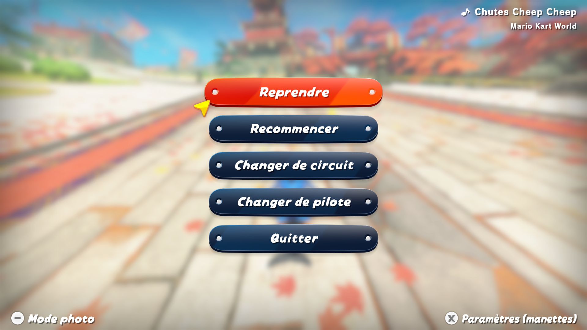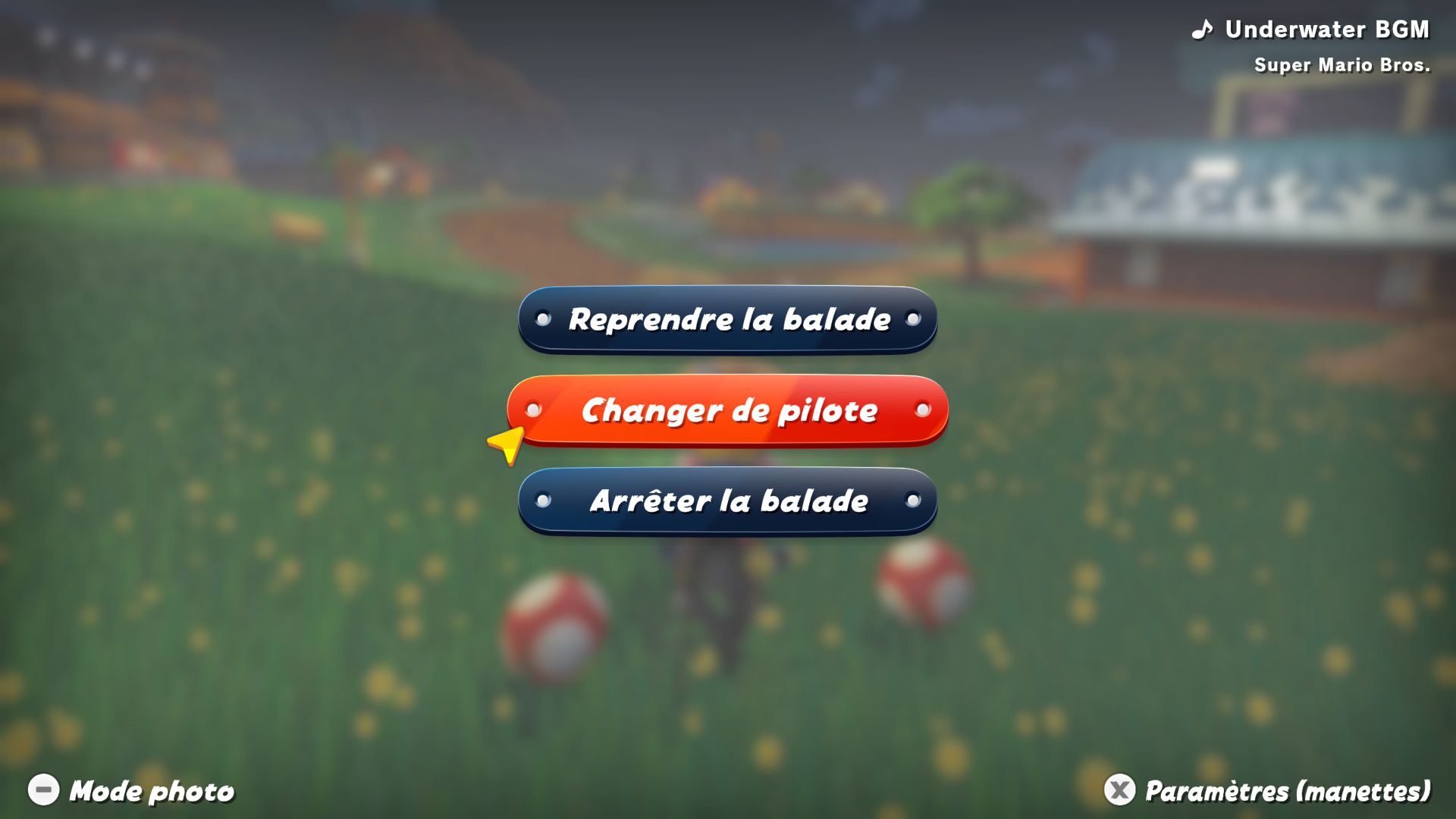 Désormais, dans le menu Pause, Mario Kart World affiche toujours le titre de la musique qui est en train d’être jouée. Cela est donc particulièrement utile dans le mode Balade, où l’on peut entendre de nombreux arrangements de musiques de jeux Mario en dehors de la série Mario Kart.