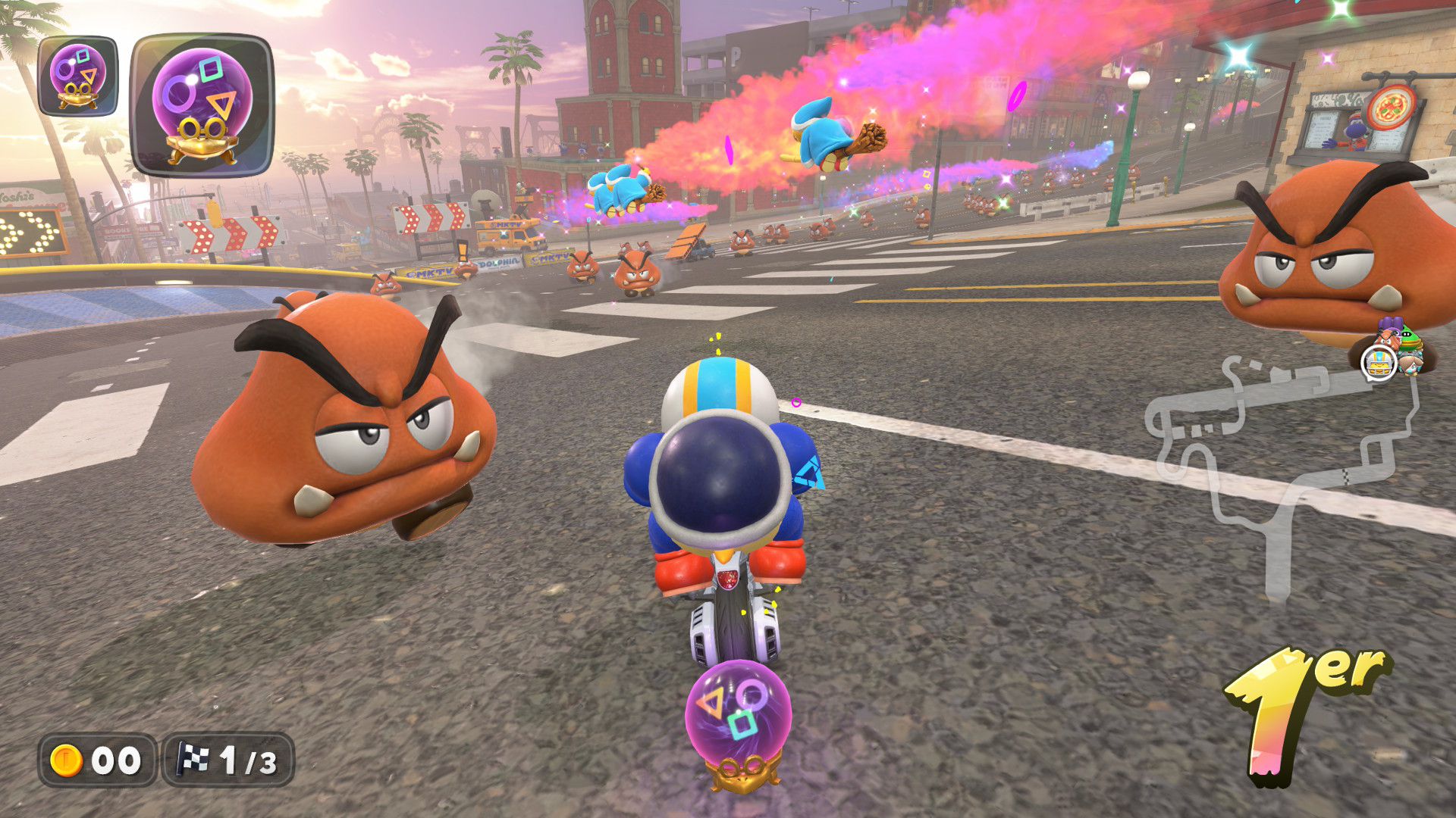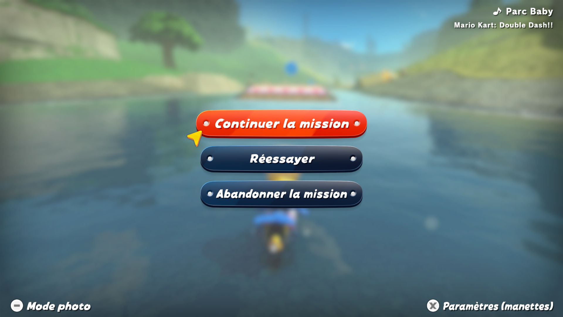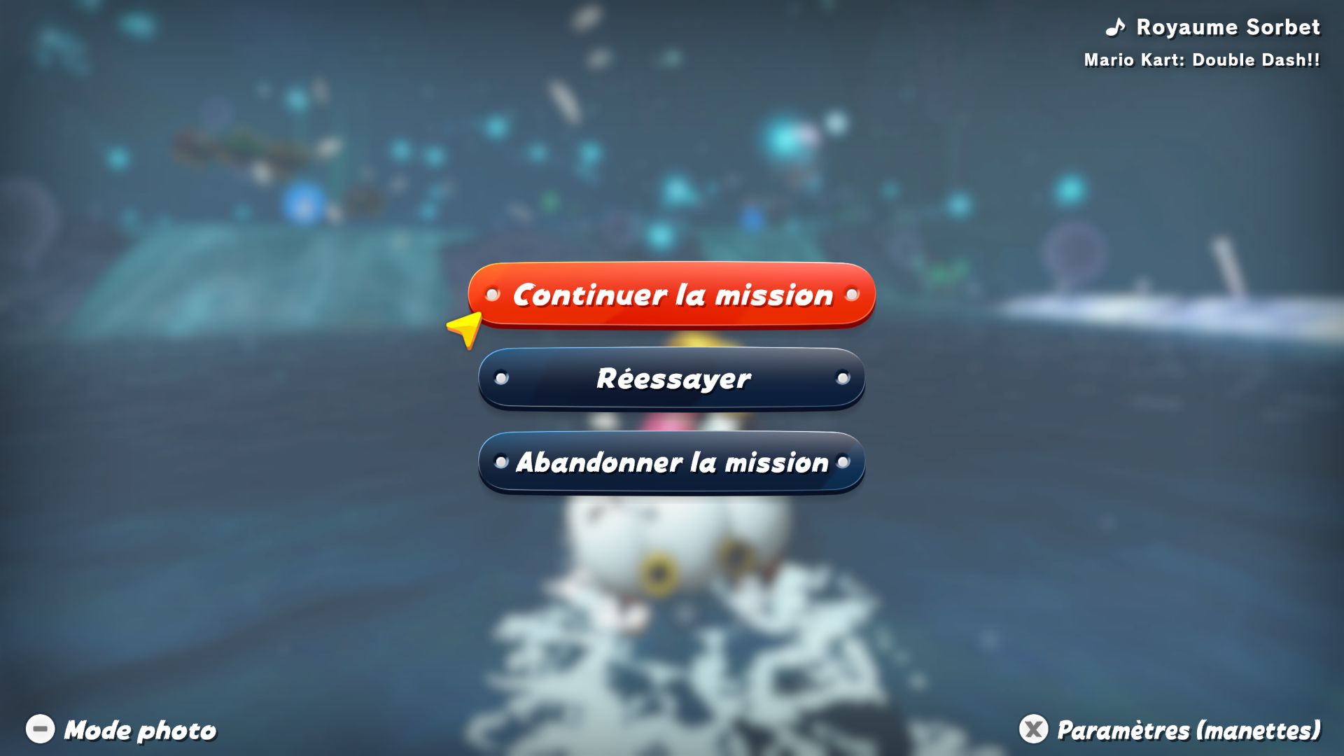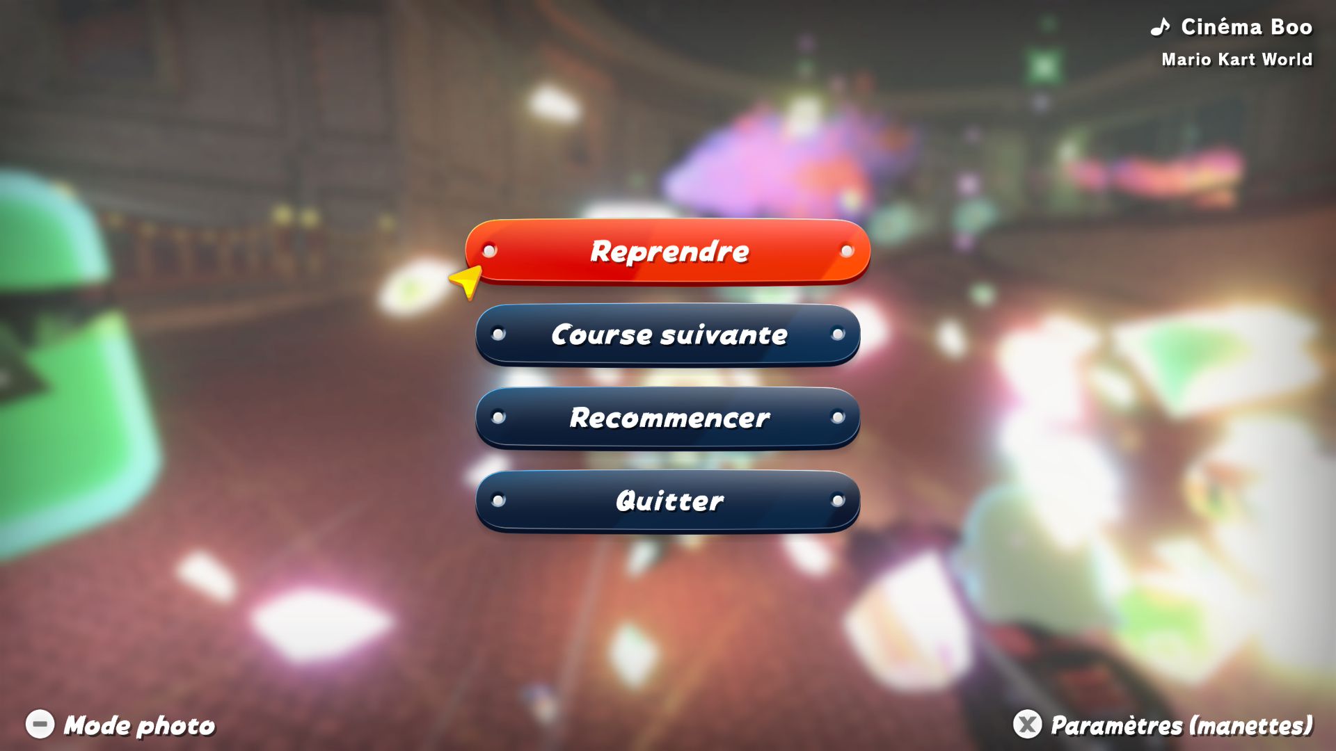 Désormais, dans le menu Pause, Mario Kart World affiche toujours le titre de la musique qui est en train d’être jouée. Cela est donc particulièrement utile dans le mode Balade, où l’on peut entendre de nombreux arrangements de musiques de jeux Mario en dehors de la série Mario Kart.