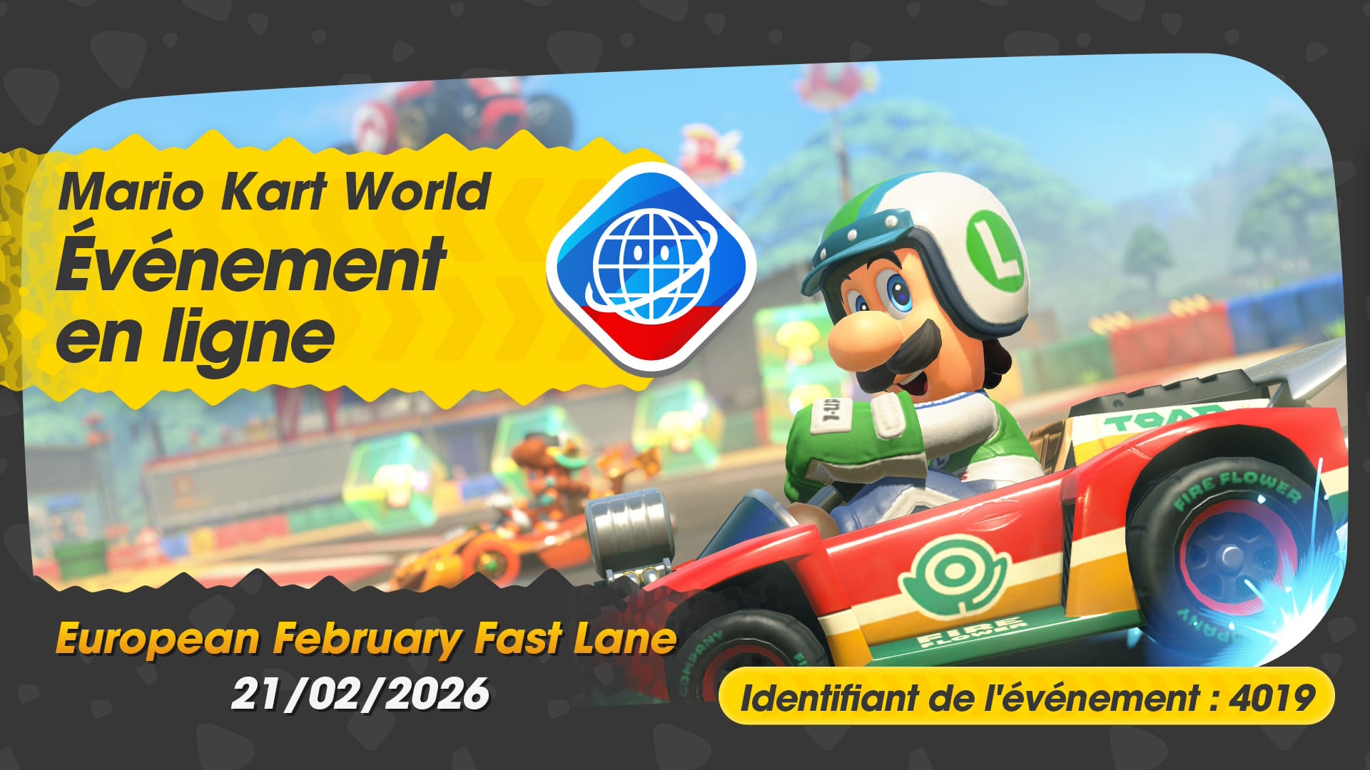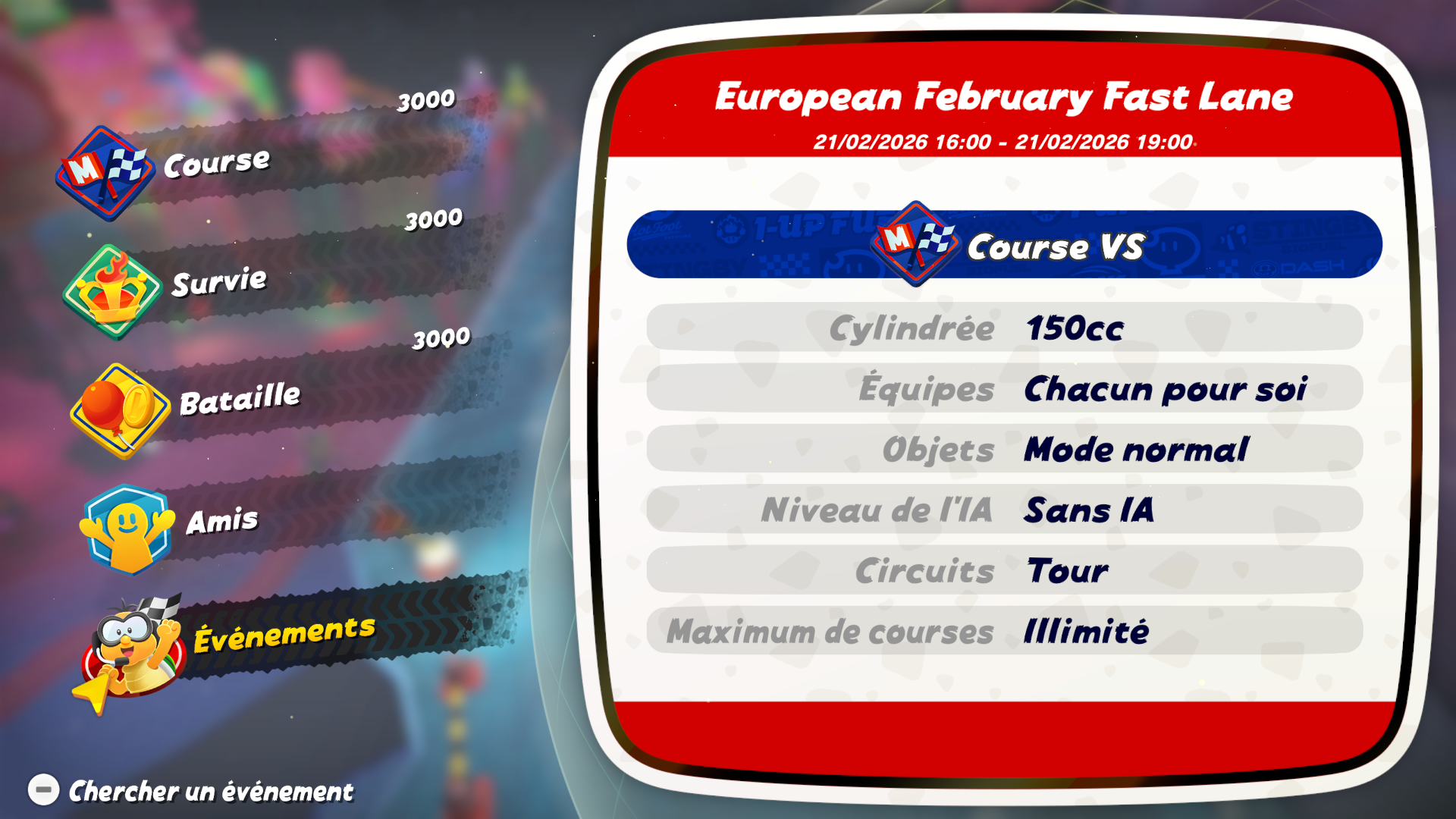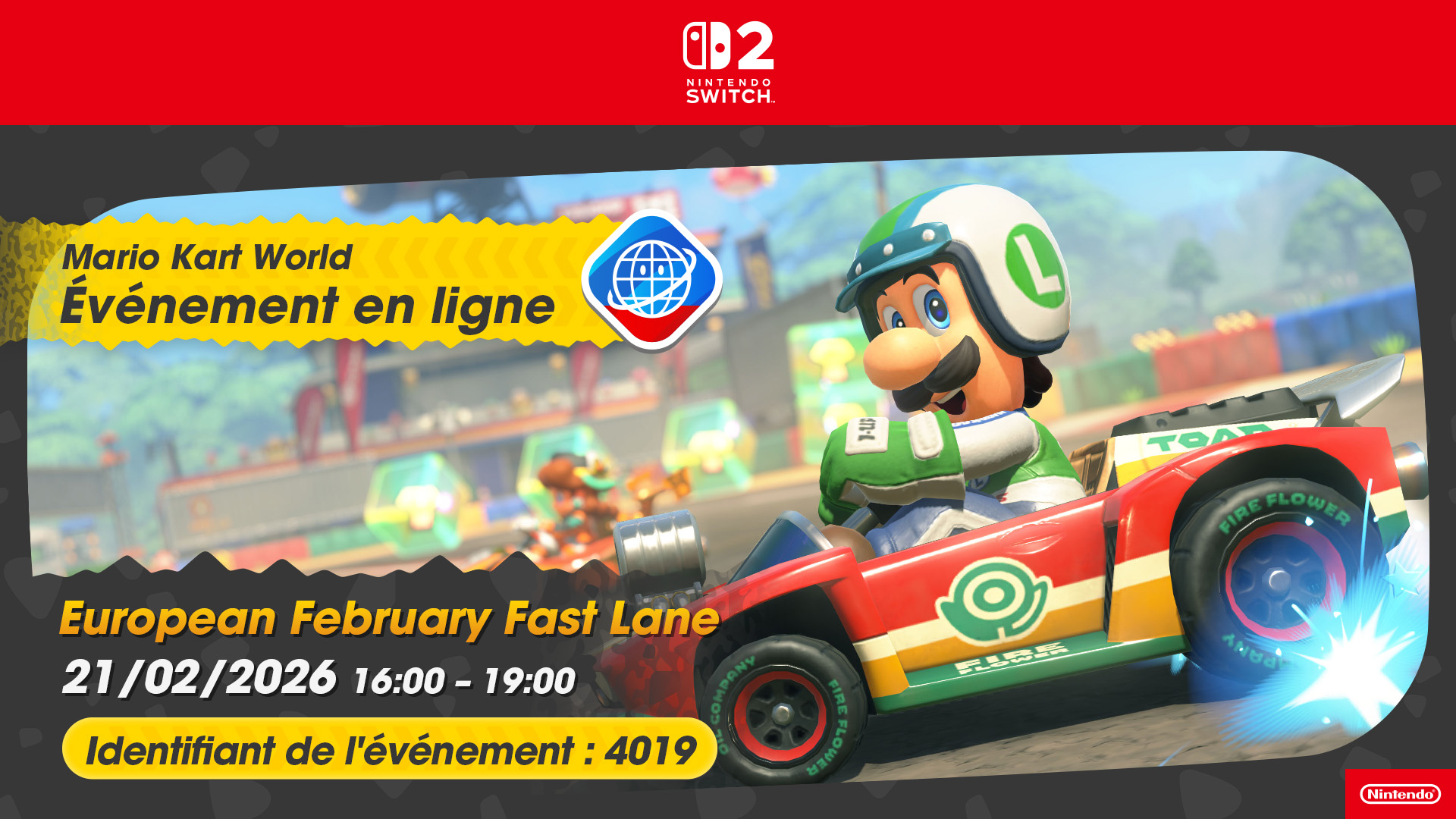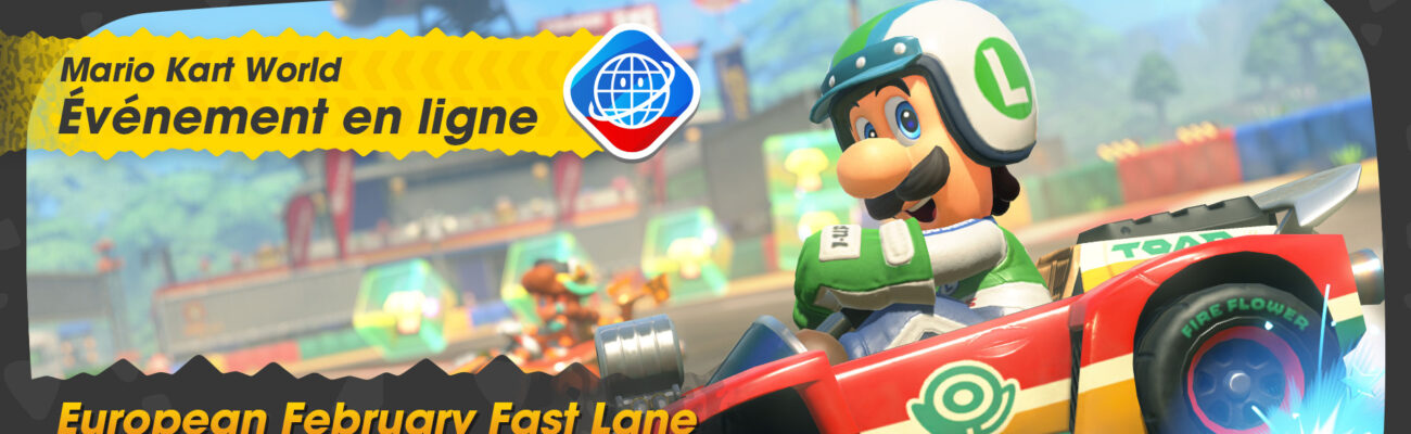 Après l’European November Knockout, Nintendo a annoncé cette semaine l’arrivée de l’European February Fast Lane pour Mario Kart World, qui se déroulera le samedi 21 février 2026 de 16:00 à 19:00. Cet événement jouable exclusivement en ligne concernera le mode Course VS et sera ouvert à toutes les personnes jouant à Mario Kart World à travers l’Europe. Au début de cet événement, on commencera avec un score de 3 000 points qui augmentera ou diminuera à la fin de chaque course. Il faudra tenter de décrocher la meilleure place possible pour améliorer notre classement.