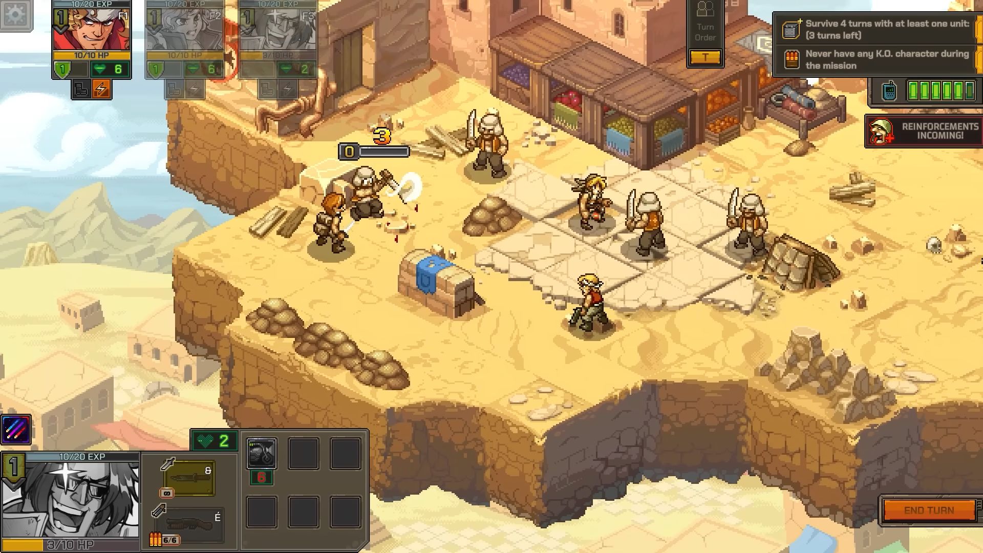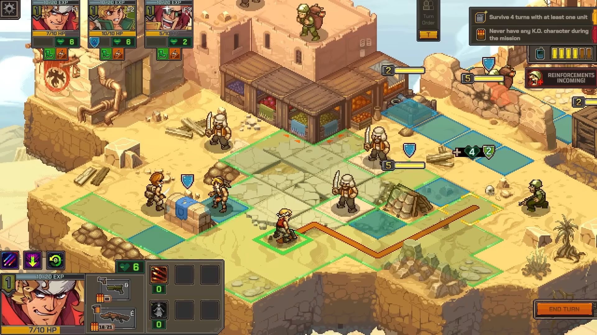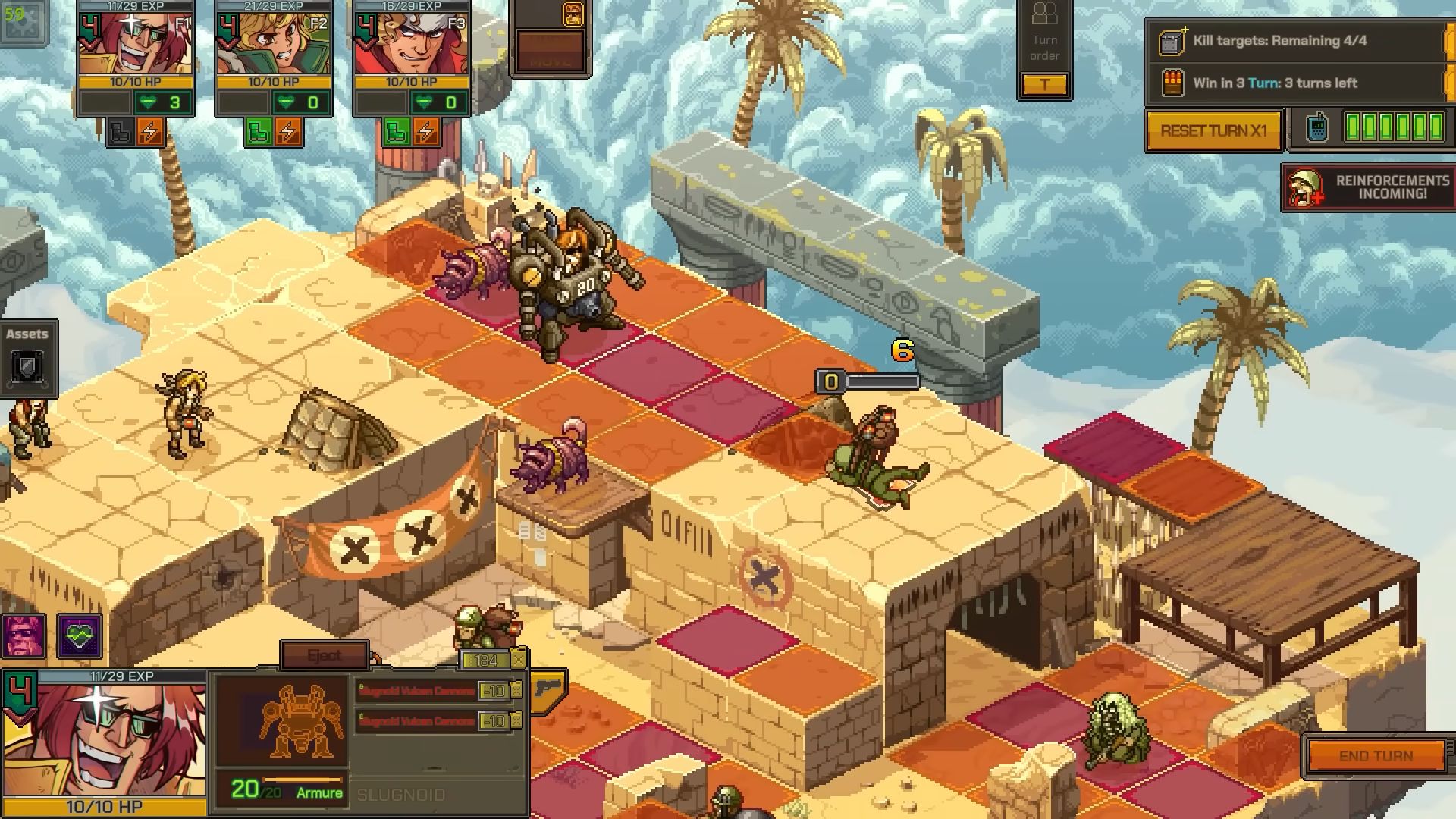 Comme prévu, la première démo jouable de Metal Slug Tactics est arrivée sur PC via Steam, dans le cadre du Steam Neo Fest. Disponible jusqu’au 17 juin 2024, elle permet de découvrir la première région du jeu et les bases des combats tactiques. On commence dans le baraquement de l’escouade, servant de base arrière pour améliorer les troupes et acheter de l’équipement. Il permet aussi de choisir les soldats à inclure dans l’équipe lors de la prochaine mission. Évidemment, il faut bien vérifier chaque personnage, chacun ayant des capacités uniques et des synergies potentielles avec d’autres héros. On trouve des personnages de la série, mais aussi de nouvelles recrues. Il est d’ailleurs possible de débloquer Tarma, un puissant et énergie compagnon d’arme. Les développeurs notent que cette démo est tirée du jeu en cours de développement et préviennent qu’il est possible de rencontrer quelques problèmes sur lesquels l’équipe travaille déjà. Une liste des problèmes connus sera publiée sur les forums. Dans le même temps, une longue bande-annonce de gameplay été diffusée, ce qui permet d’en savoir largement plus sur les mécaniques de jeu :