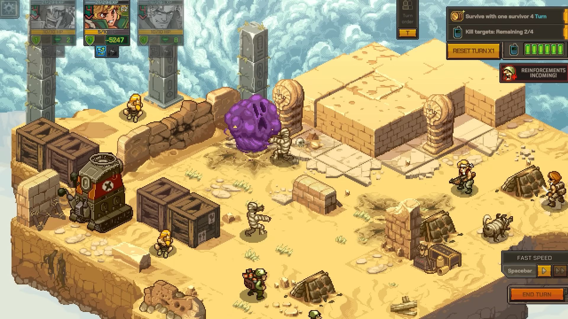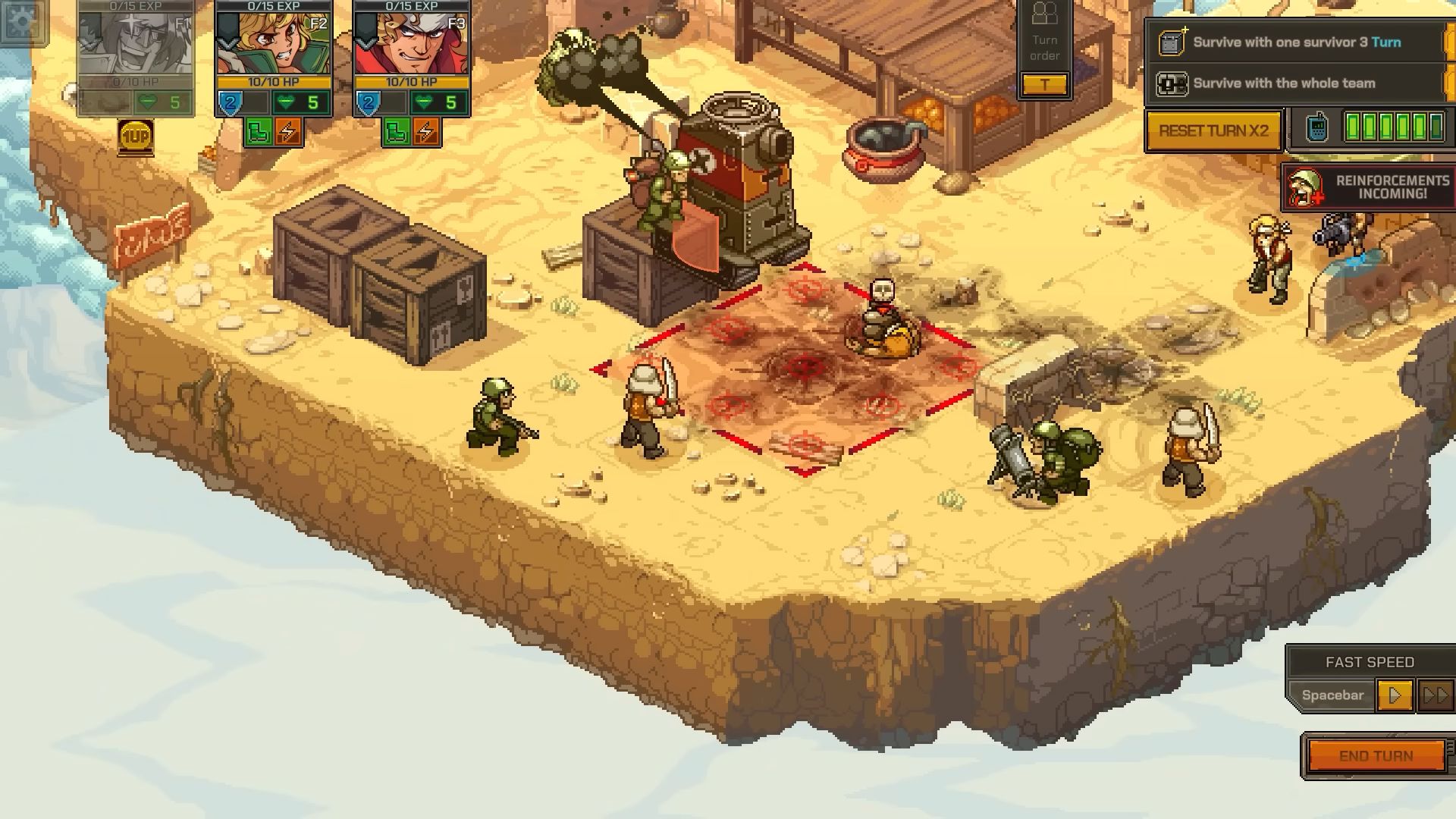 Metal Slug Tactics réinvente les combats emblématiques de la série METAL SLUG. Menez votre escouade à la victoire grâce à vos décisions stratégiques et à votre incroyable force de frappe dans un jeu mêlant à la perfection action et réflexion. Déchaînez de puissantes attaques spéciales et remportez chaque affrontement !