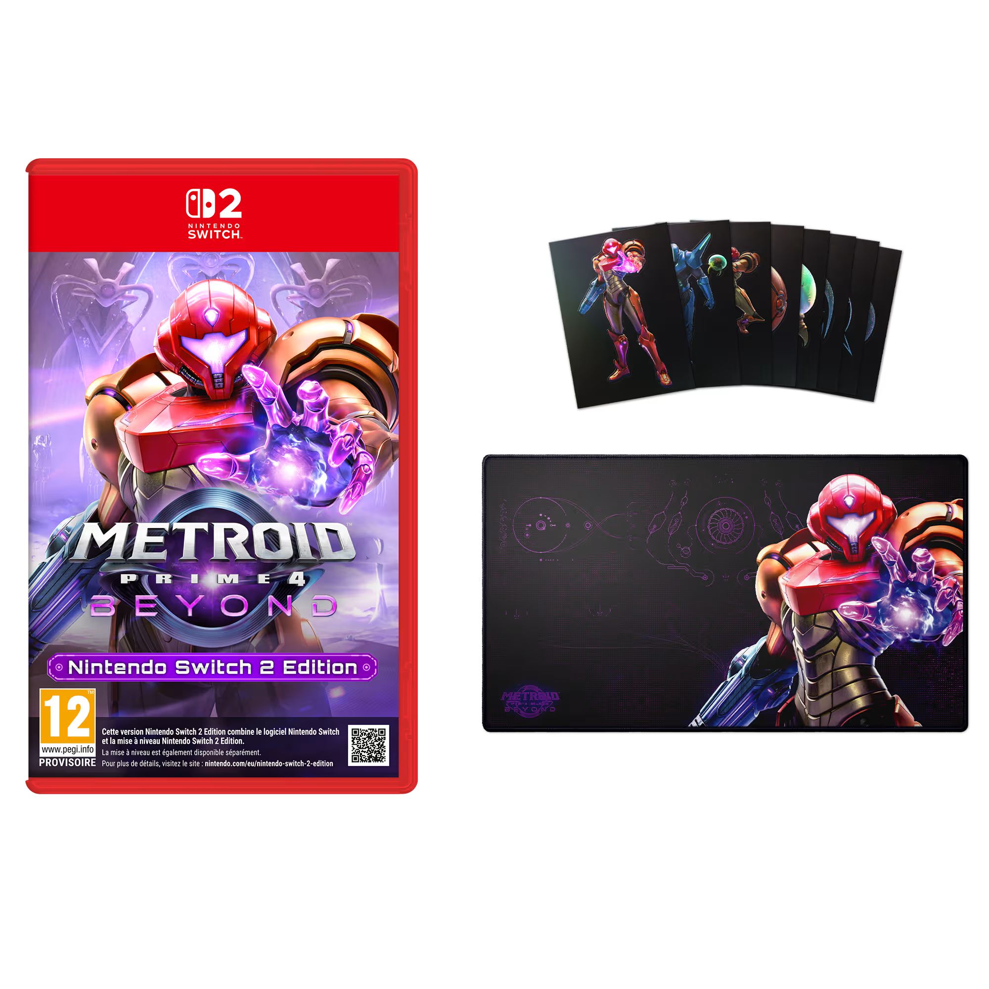 En parlant du My Nintendo Store, la version française propose un « Pack Puissance » avec la version Switch, la version Switch 2 Edition, la Switch 2 avec des codes de téléchargement du jeu et sa mise à niveau Switch 2 Edition, un tapis de bureau, un set d’autocollants holographiques ainsi qu’un porte-clés pour tout achat de n’importe quelle version.