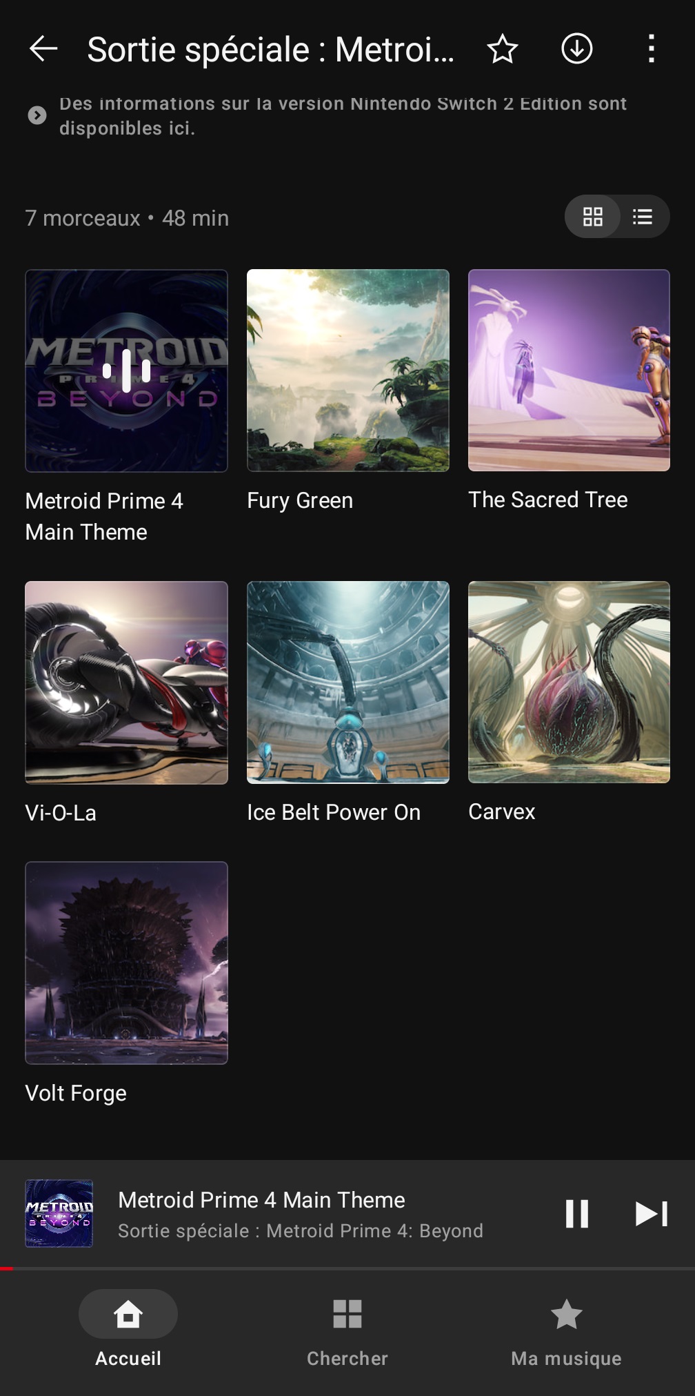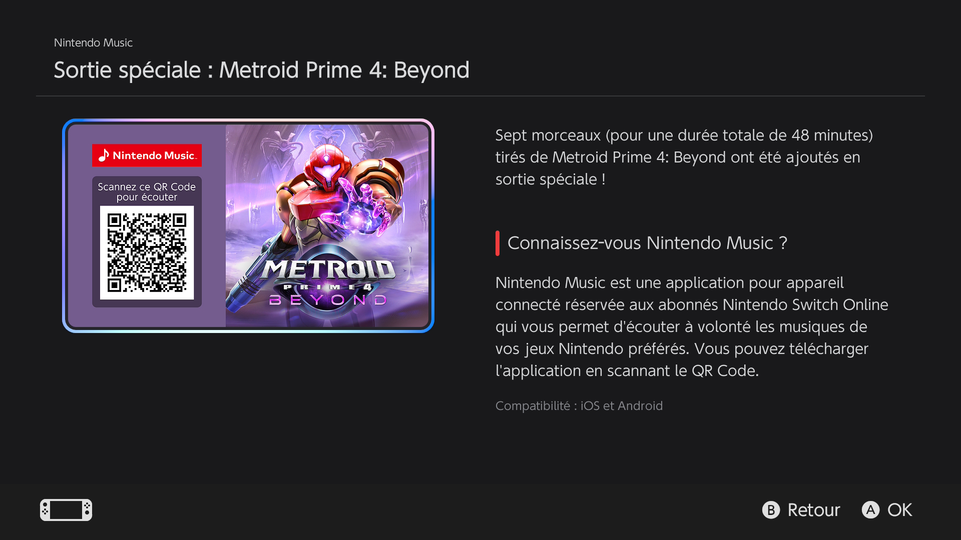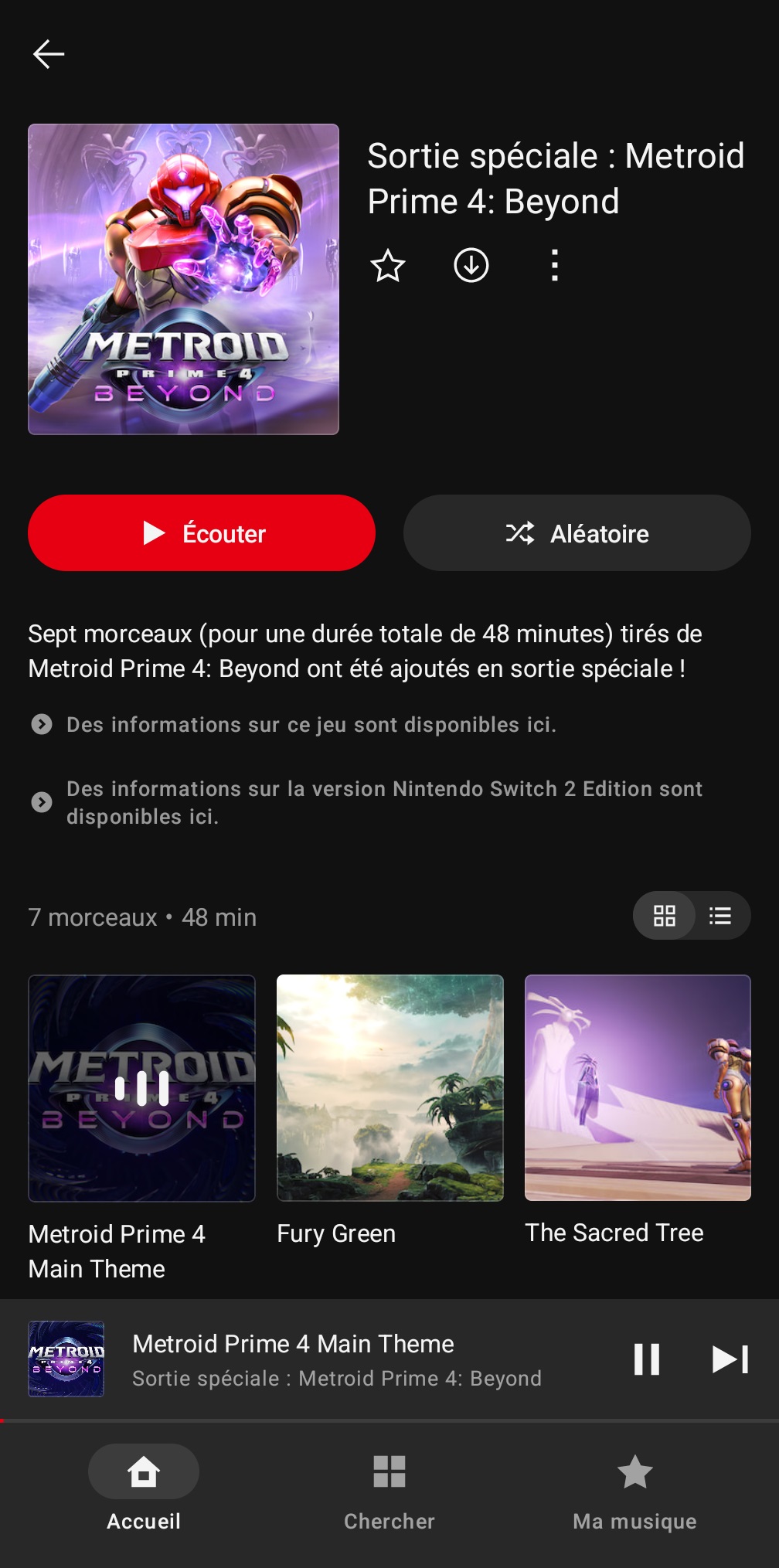 À l’occasion de la sortie de Metroid Prime 4 : Beyond, sept musiques du jeu ont été ajoutées dans l’application Nintendo Music sur Android et iOS. Il s’agit d’une « sortie spéciale », ce qui signifie qu’il n’y a donc que quelques musiques pour le moment, avant que d’autres soient éventuellement incorporées dans les mois à venir, comme ce fut le cas par exemple pour Kirby Air Riders. Nintendo n’a pas communiqué sur le personnel derrière la bande originale, mais les crédits nous ont permis de découvrir que Kenji Yamamoto et Minako Hamano, deux vétérans de Nintendo, sont derrière l’OST de Metroid Prime 4 : Beyond. Deux solistes soprano sont également créditées : Elora Maren et Katshu. Un autre membre de Nintendo, Shinji Ushiroda, est aussi crédité pour l’« Environment Sound Support ». Pour le reste, plusieurs membres de Retro Studios et Formosa Interactive sont crédités au sound design et d’autres domaines liés à l’audio.