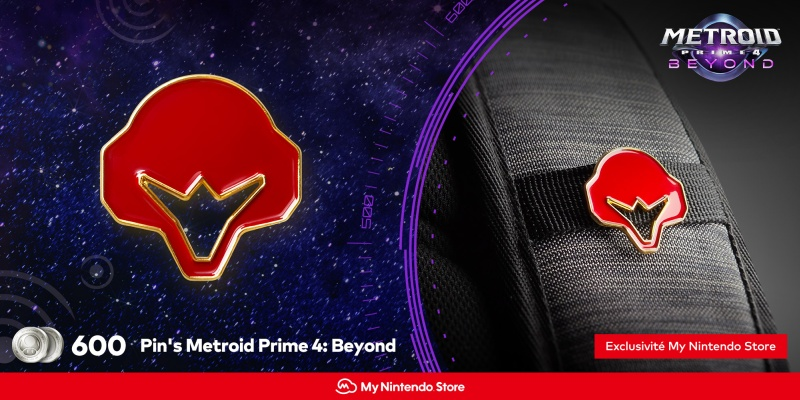 Sur la même boutique, il est possible d’échanger 600 points platine My Nintendo contre un pin’s Metroid Prime 4 : Beyond.