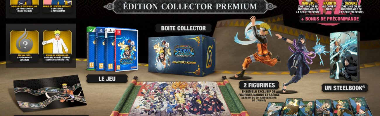 Les éditions physiques de Naruto X Boruto Ultimate Ninja Storm Connections, détaillées ci-dessous, sur toutes les consoles mentionnées sont d’ores et déjà disponible en précommande. Certaines peuvent être achetées sur la boutique officielle européenne de Bandai Namco. Les versions dématérialisées le sont aussi, mais uniquement pour les versions PlayStation et Xbox. De plus, pour l’achat de n’importe quelle édition, trois tenues seront offertes : Naruto Uzumaki (tenue commémorative des 20 ans de l’anime), Sasuke Uchiwa (tenue commémorative des 20 ans de l’anime) et Naruto Uzumaki (Ultime Combat). Les personnes possèdant Naruto to Boruto : Shinobi Striker recevront aussi le t-shirt Nanashi et la tenue Merz. Ce jeu n’étant pas disponible sur Switch, il ne sera pas possible d’en profiter.