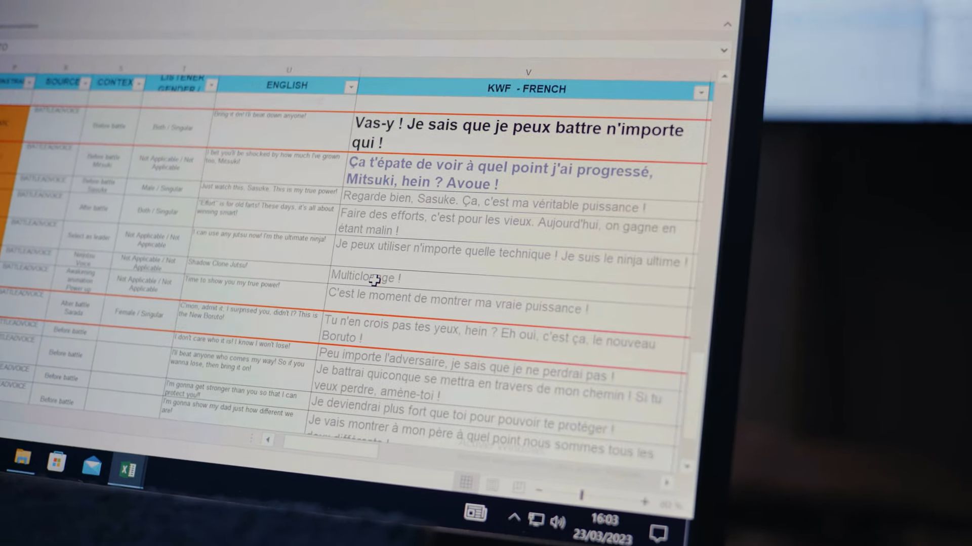 Fabienne Loriaux, qui double donc Boruto, a confié : « Je suis super fière d’avoir eu la possibilité de participer au jeu. Ça a été une expérience incroyable ! 8 jours de travail à placer sa voix sur des ondes sonores et des animatiques. Ça n’a été que du bonheur ! J’espère que les joueurs auront autant de plaisir avec NARUTO X BORUTO Ultimate Ninja STORM CONNECTIONS, que j’en ai eu à le doubler. »