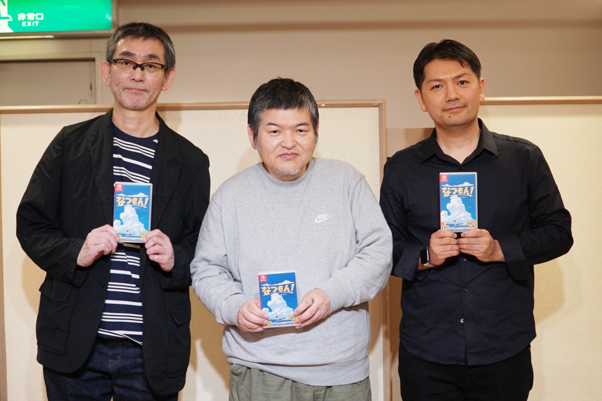 De gauche à droite : le producteur Yasuhiro Wada (Toybox), le réalisateur Kaz Ayabe (Millennium Kitchen) et le producteur Shohei Sakakibara (Spike Chunsoft) lors d’une interview accordée à 4Gamer