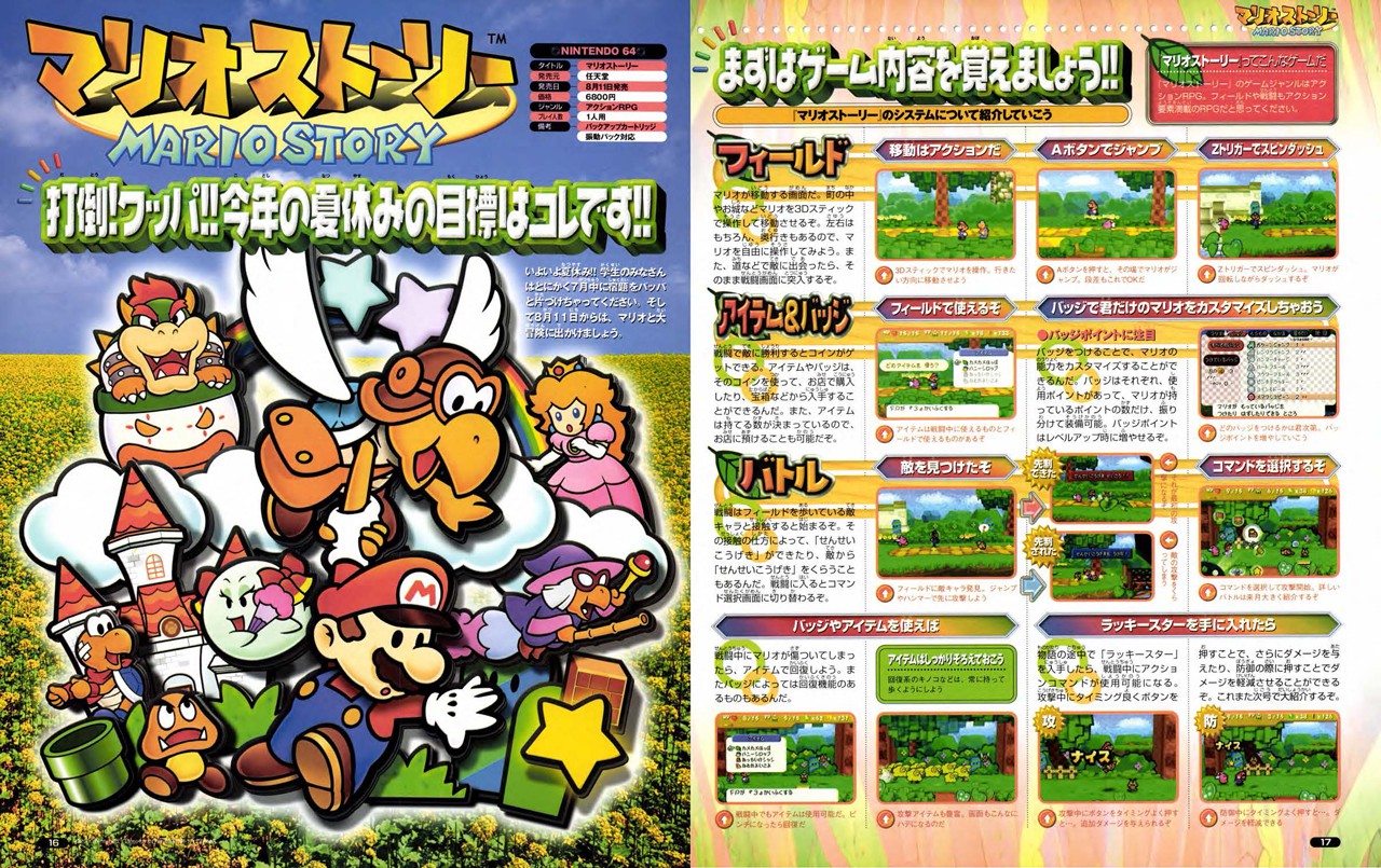 À l’occasion de l’annonce de son arrivée dans le logiciel Nintendo 64 – Nintendo Switch Online, Nintendo a publié un article au sujet de Paper Mario / Mario Story sur son blog officiel. La société a décidé d’offrir gratuitement les trois articles d’août, septembre et octobre consacrés au jeu qui étaient parus dans le magazine 64DREAM en 2000 (devenu ensuite Nintendo Dream) en format PDF (août / septembre / octobre). On y découvre des illustrations et différents secrets et conseils, qui viennent d’être rappelés sur le blog de Nintendo. Il y a par exemple les capacités des alliés, les news du Royaume Champignon, la possibilité de voir Mario sous sa forme Super Mario Bros. dans le troisième stage ou encore le sous-sol secret de la chambre de Mario avec le journal de Luigi. Enfin, Nintendo indique qu’en jouant avec les Joy-Con au lieu de la manette Nintendo 64, on pourra vérifier les affectations des boutons dans le guide d’utilisation en appuyant sur le bouton -.