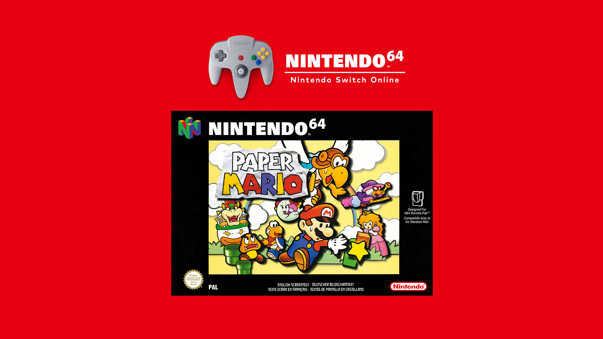 Nous savions déjà que Nintendo comptait ajouter progressivement des jeux supplémentaires pour les logiciels Nintendo 64 – Nintendo Switch Online et SEGA Mega Drive – Nintendo Switch Online, mais depuis le lancement des nouvelles formules d’abonnement Nintendo Switch Online + Pack additionnel, nous n’avions pas de nouvelles en dehors des listes des premiers jeux additionnels prévus. Cependant, Nintendo a annoncé aujourd’hui que Paper Mario, qui faisait bien partie de la liste des prochains jeux N64, sera ajouté au logiciel correspondant dès le 10 décembre prochain. Sorti à l’origine en 2000 au Japon sous le nom de Mario Story puis en 2001 en Occident, Paper Mario était le premier épisode de la série. Il était ressorti en version console virtuelle sur Wii et Wii U. Avec son arrivée sur Switch, il sera enfin possible d’y rejouer en version PAL européenne avec la traduction française.