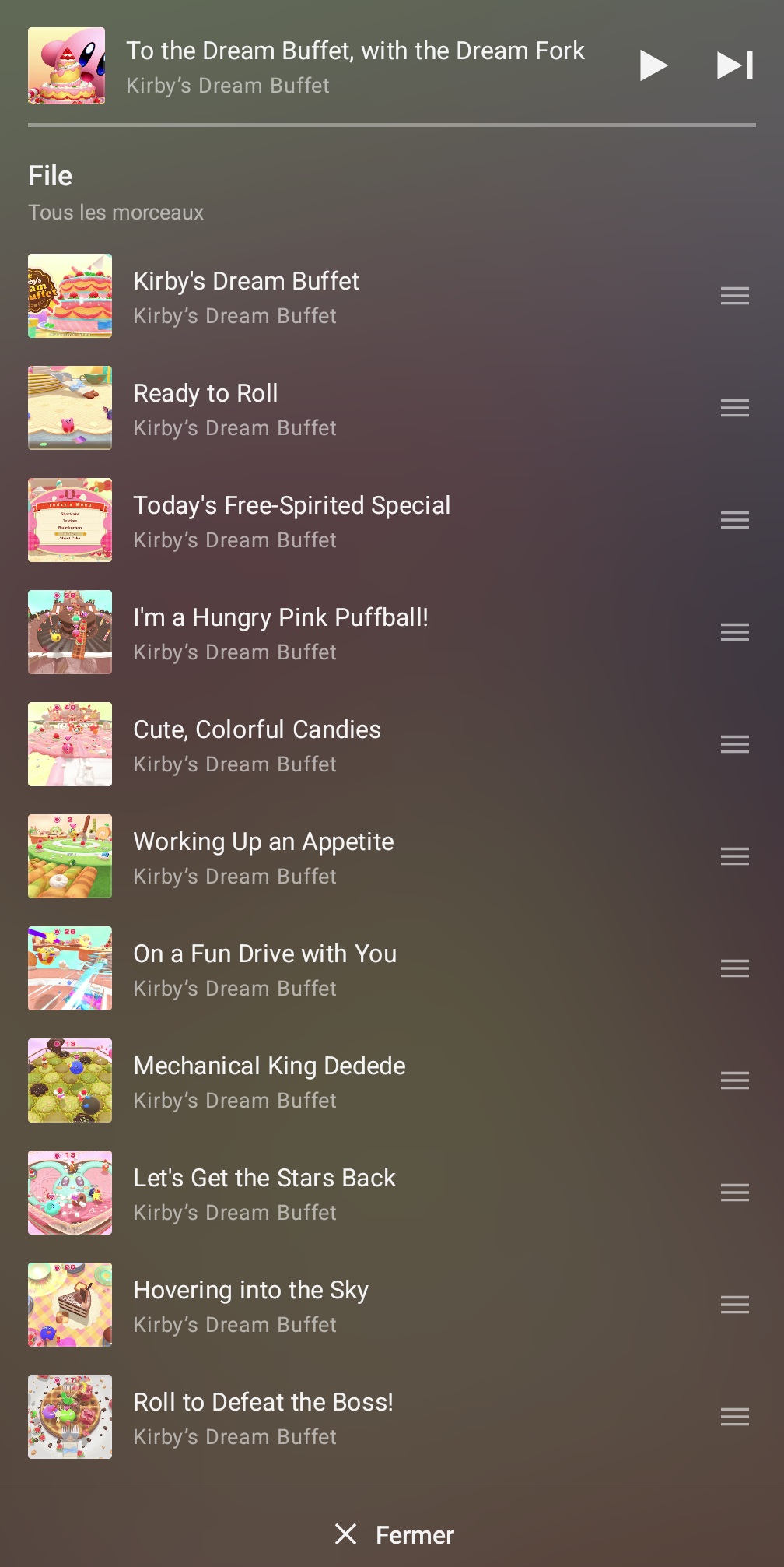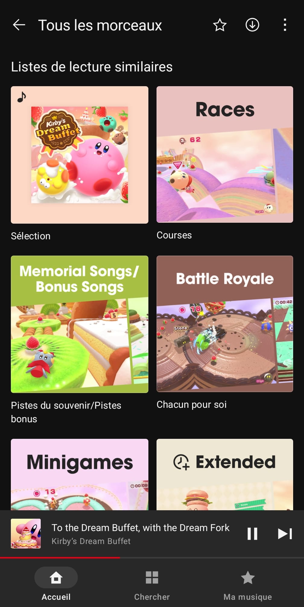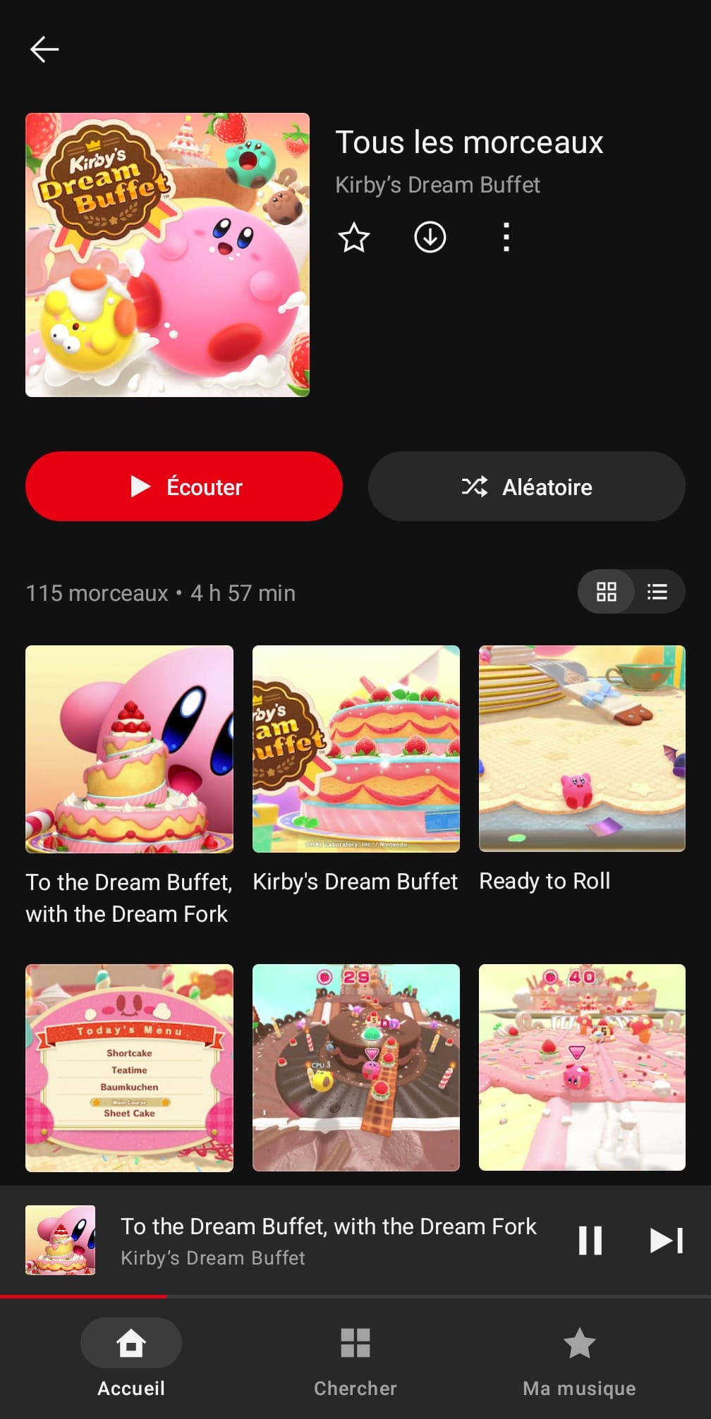 Nintendo a ajouté ce 11 novembre 2025 des musiques d’un jeu supplémentaire dans l’application Nintendo Music sur Android et iOS : Kirby’s Dream Buffet. Au total, on trouve 115 morceaux de la bande originale, qui avait été dirigée par Yuuta Ogasawara. Jun Ishikawa, Shogo Sakai, Hirokazu Ando, Megumi Ohara et Yuki Shimooka étaient également crédités dans la partie « Sound » du jeu, et Tadashi Ikegami apparaissait dans les « Special Thanks ». L’OST de Kirby’s Dream Buffet n’a jamais été commercialisée.