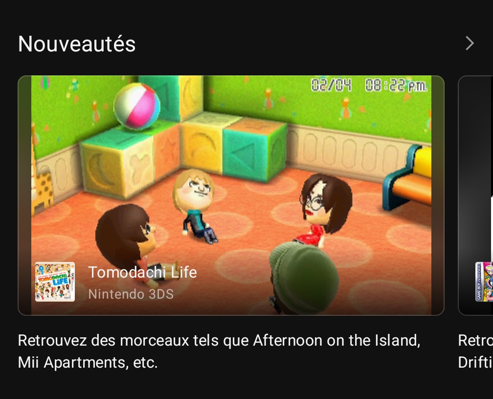 Nintendo a ajouté, ce 3 février 2026, des musiques d’un jeu supplémentaire dans l’application Nintendo Music sur Android et iOS : Tomodachi Life. Au total, 210 morceaux de la bande originale composée par Daisuke Matsuoka et Asuka Ito sont disponibles. Takahiko Fujita s’était occupé de la programmation de l’audio et Riyu Tamura était en charge des effets sonores. Nintendo créditait aussi deux personnes derrière les chansons, Ryoko Yamazaki et Miyako Takayama. Kenji Yamamoto avait supervisé le tout. L’OST de Tomodachi Life n’a jamais été commercialisée, mais la musique du générique de fin avait été incluse dans l’album NINTENDO SOUND SELECTION [Endings & Credits] / NINTENDO SOUND SELECTION [Ending & Staff Roll].
