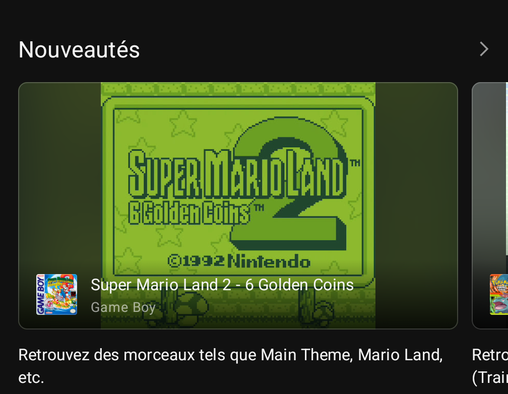 Nintendo a ajouté, ce 24 février 2026, des musiques d’un jeu supplémentaire dans l’application Nintendo Music sur Android et iOS : Super Mario Land 2 : 6 Golden Coins. Au total, 35 morceaux de la bande originale composée par Kazumi Totaka ont été ajoutés. L’OST de Super Mario Land 2 : 6 Golden Coins n’a jamais été commercialisée, mais deux musiques du jeu, Main Theme et Star Course (Space Zone), étaient incluses dans l’album THE 30TH ANNIVERSARY SUPER MARIO BROS. MUSIC, sorti le 13 septembre 2015 via NIPPON COLUMBIA.