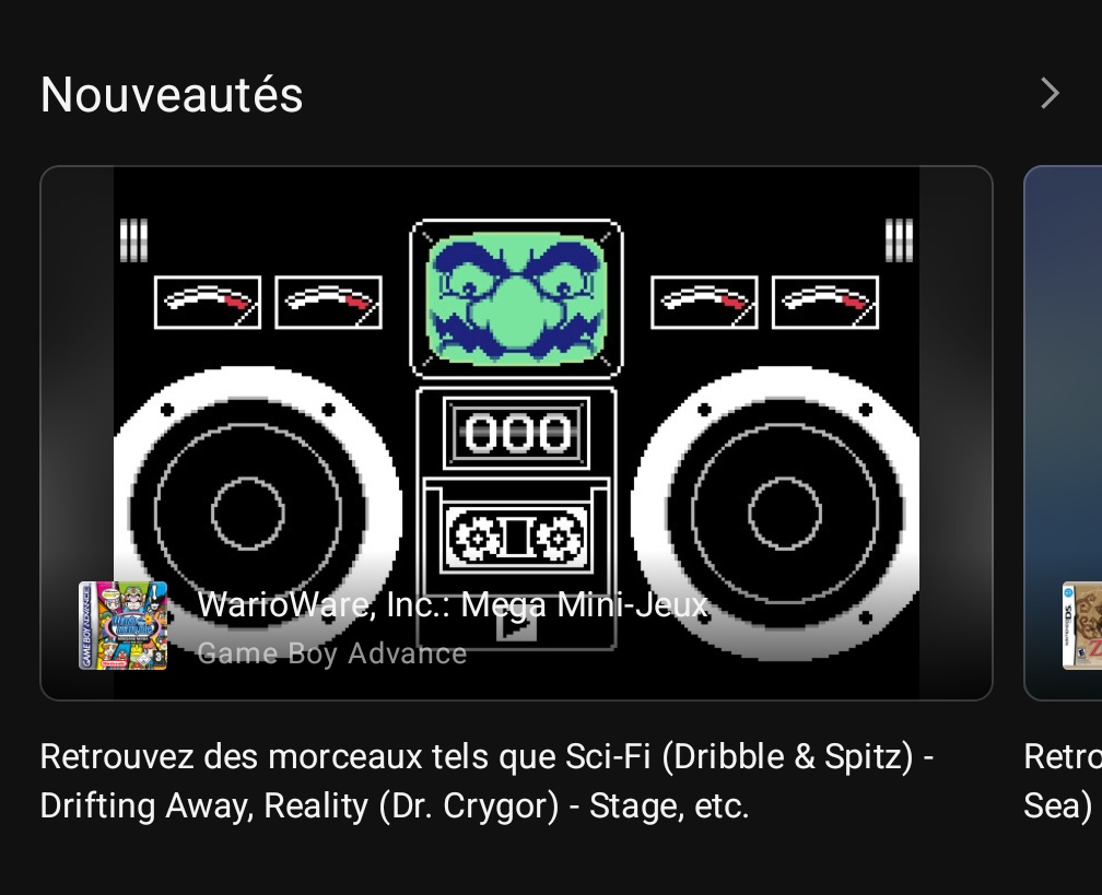 Nintendo a ajouté, ce 27 janvier 2026, des musiques d’un jeu supplémentaire dans l’application Nintendo Music sur Android et iOS : WarioWare, Inc. : Mega Mini-Jeux. Au total, 356 morceaux de la bande originale composée par Ryoji Yoshitomi et Kyoko Miyamoto sont disponibles. Yoshitomi avait été également en charge de la direction de l’audio, tandis que Kazuyoshi Osawa s’était occupé de la programmation de l’audio. L’OST de WarioWare, Inc. : Mega Mini-Jeux n’a jamais été commercialisée, mais deux musiques du jeu avaient été incluses respectivement dans les albums Nintendo Sound Selection vol.2 Koopa <Loud Music> (Wario’s Everything Company) et Nintendo Sound Selection vol.3 Luigi <B-Side Music> (Voices Being Carried on the Waves (Spring Chapter)).
