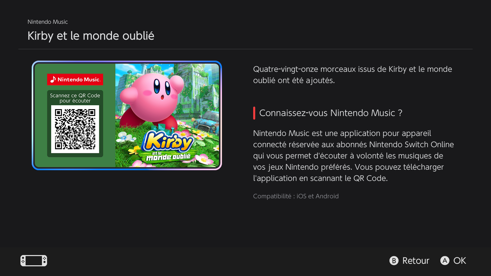 Sur son site officiel, il est intéressant de noter que Nintendo indique que l’application Nintendo Music pourra aussi suggérer des musiques en fonction des jeux auxquels on joue. Par exemple, si l’on joue à un nouveau jeu sur Switch, et que sa bande originale est disponible dans l’application, cette dernière nous le fera savoir. On pourra aussi recevoir des notifications lorsque de nouvelles bandes originales seront ajoutées. Pour en savoir plus sur l’application, vous pouvez consulter cet article.