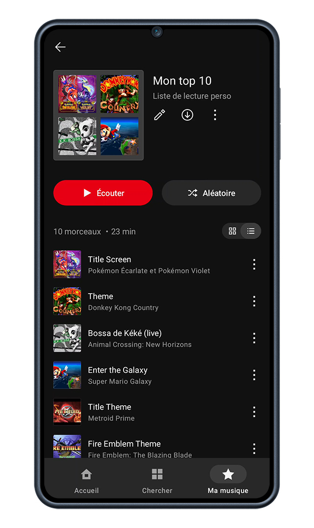 L’application Nintendo Music, sortie ce 30 octobre 2024, permet donc d’écouter les bandes originales (à l’exception de certains morceaux en fonction des titres) de plusieurs jeux édités par Nintendo. Pour le moment, l’application couvre plusieurs titres sortis sur Switch, Wii, DS, GameCube, Game Boy Advance, Nintendo 64, SNES, Game Boy et NES. Des musiques supplémentaires viendront s’ajouter plus tard.
