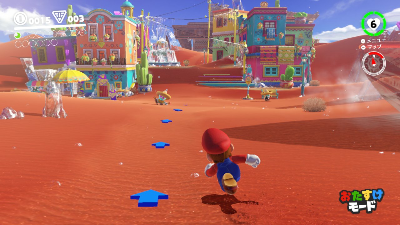 Chaque voyage entre pays nécessite un quota de lunes à récupérer pour pouvoir repartir. Durant le fil de l’histoire principale, on se retrouve donc à survoler chaque pays tout en faisant les quêtes principales, les combats de boss… Mais globalement, sorti de ce carcan diégétique ultra carré, le jeu propose surtout des micros objectifs quand il faut recouvrer des lunes et ceux qui espéraient des défis comme dans les anciens Mario seront potentiellement déçus. Mais vu le nombre pléthorique de lunes, des centaines à trouver, tout le monde devrait y trouver son compte. Ce grand nombre tend également au remplissage et l’effet collecte des noix Korogus n’est pas très loin. D’autant plus que dans l’end game, les évènements post-générique de fin nécessitent beaucoup de lunes pour finalement peu de récompenses. Mais il est toujours agréable de prendre son temps pour gambader sur la plage ou dans la forêt en quête de lune après avoir terminé l’histoire principale.