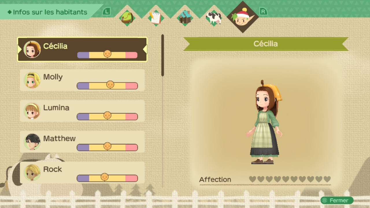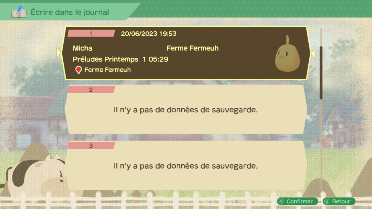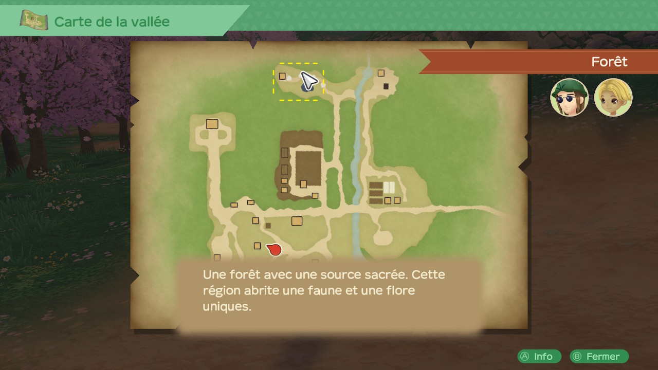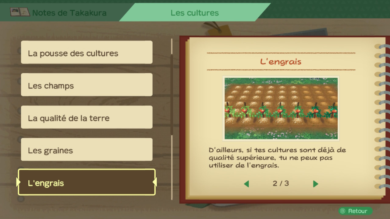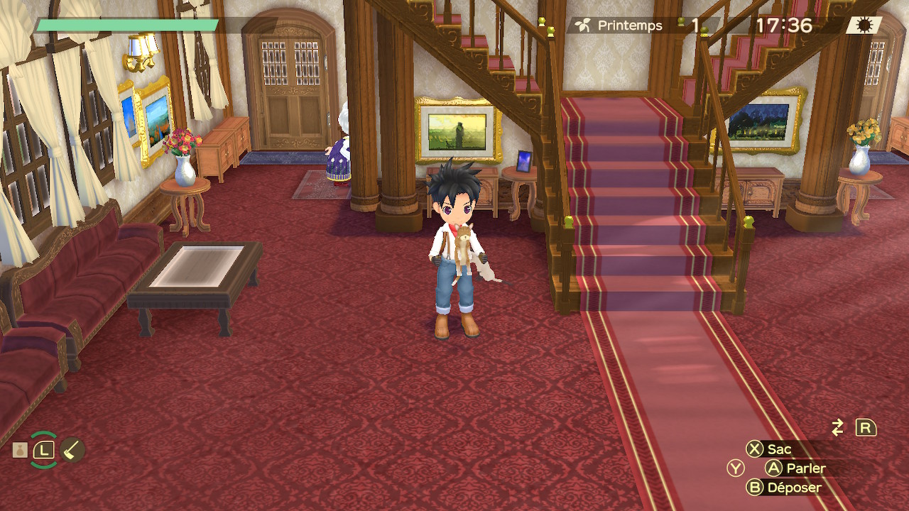 Pour bien commencer dans la Vallée oubliée, il est important d’apprendre ce qu’il y a à savoir au sujet de l’agriculture, les saisons, la santé de notre avatar, la ferme, le bétail, la vente de produits, les commandes ou encore les outils. Si l’on débute dans la série ou si ces notes ne sont pas lues, on peut facilement errer sans but dans la Vallée oubliée et s’ennuyer rapidement. En lisant attentivement ce qu’il y a à savoir, l’aventure se dessine petit à petit et on prend du plaisir à visiter la Vallée oubliée et à rencontrer les différents personnages. La direction artistique de ce jeu et de ce remake est assez simple, et le fait de commencer au printemps permet de profiter de journées assez variées, où il peut pleuvoir deux jours de suite par exemple.