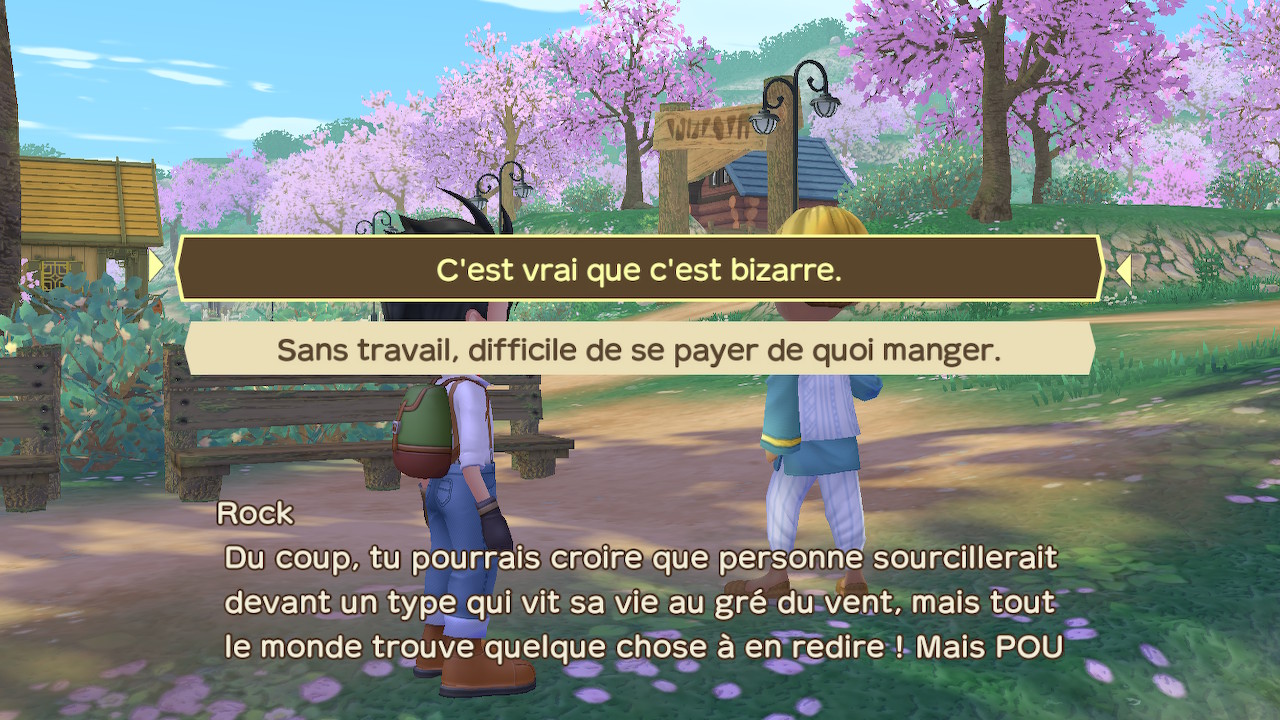 D’un point de vue technique, Story of Seasons : A Wonderful Life tient relativement bien la route. Sur Switch, que ce soit en mode portable ou téléviseur, nous n’avons rien à reprocher à ce remake puisque la fluidité est au rendez-vous. Cela n’est pas étonnant pour un remake d’un jeu sorti il y a vingt ans, surtout que Marvelous a adopté une direction artistique très simple, malgré de sérieuses modifications, notamment au niveau de l’apparence des personnages. Cela peut être assez déroutant par rapport à certains personnages pour les personnes qui avaient déjà joué à l’épisode d’origine. Cette simplicité est aussi l’inconvénient de cet épisode, auquel on peut reprocher un certain manque de couleurs et de folie en le comparant aux derniers jeux. C’est aussi à ce niveau que l’on voit qu’il s’agit bien d’un remake.