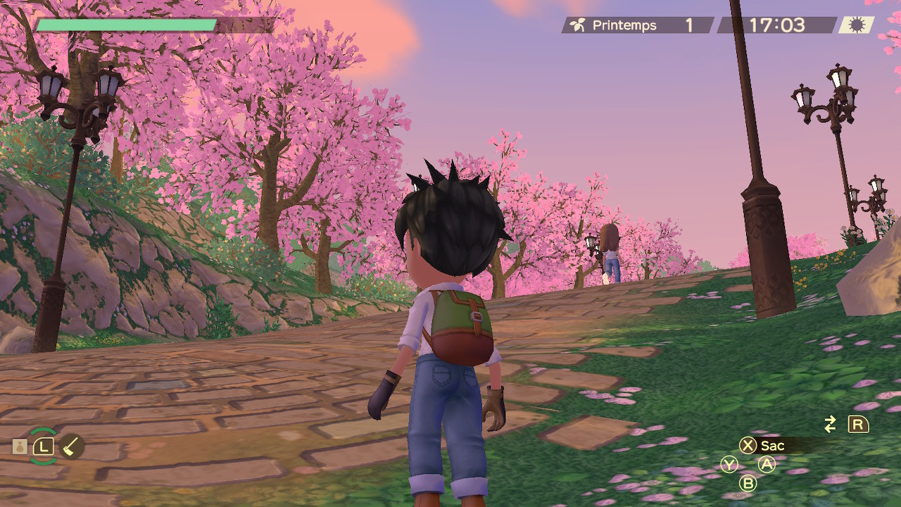 Le cycle du jeu ne repose heureusement pas sur l’horloge de la console, il a son propre système intégré. Comme dans le monde réel, le temps est divisé en quatre saisons : le printemps, l’été, l’automne et l’hiver. Cependant, il y a des différences majeures : chaque saison dure environ 10 jours et les journées passent très vite. C’est nécessaire dans la série, d’autant plus que de base, le rythme est déjà relativement lent et la vie dans le village peut être répétitive si l’on n’arrive pas à varier les activités et que l’on ne souhaite pas parler à tous les personnages. Cet épisode n’y échappe pas, et si l’on ne sait pas trop quoi faire, l’ennui arrive vite. Dans ce jeu, des scènes se débloquent avec certains personnages et font avancer en quelque sorte l’histoire. De plus, un festival est organisé chaque saison, ce qui ajoute de la variété aux journées.