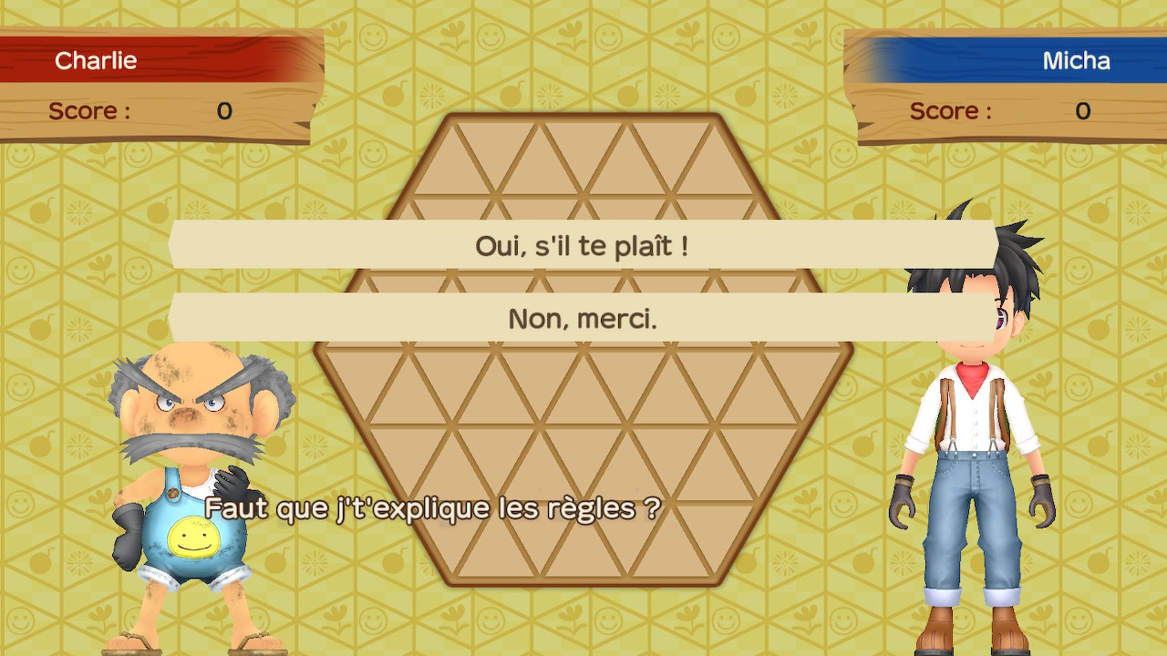 Ce qui peut paraître assez étonnant avec ce remake est le soin apporté à la localisation et à la traduction. Malgré quelques petits soucis sans grande incidence hormis dans certains dialogues (nous en avons inclus dans la galerie ci-dessous), les textes traduits en français sont de très bonne qualité. On a donc très vite regardé les crédits pour voir les équipes en charge de la localisation et de la traduction. Il y a effectivement beaucoup de soin qui a été apporté à ce niveau, ce qui explique pourquoi la sortie du jeu n’était pas mondiale. Marvelous a fait appel à Testronic pour la version européenne, avec quatre personnes chargées de la traduction française et de la correction : Lucile Danilov, Corrie Gilbert, Pierre Houzé et Jeremy Pavy. Voir des équipes constituées de cette façon est assez rassurant, contrairement à d’autres productions comme une partie des titres de NIS America, dont certains jeux sont traduits par une seule voire au minimum deux personnes en français. Mais le soin apporté à la localisation de ce remake ne s’arrête pas là, puisqu’on note aussi la présence de plusieurs doublages. Un choix qui paraît assez étonnant quand on commence par un visionnage des crédits sans avoir joué une seule seconde au jeu, mais qui finit par se comprendre en jouant car le doublage est très limité. En effet, il y a seulement quelques mots et des onomatopées qui sont prononcés. On a donc des voix en français, en allemand, en espagnol, en japonais et en anglais. Pour la version française, ce sont les doubleurs suivants qui ont prêté leurs voix aux personnages, avec Ronald Magaut à la direction du doublage :