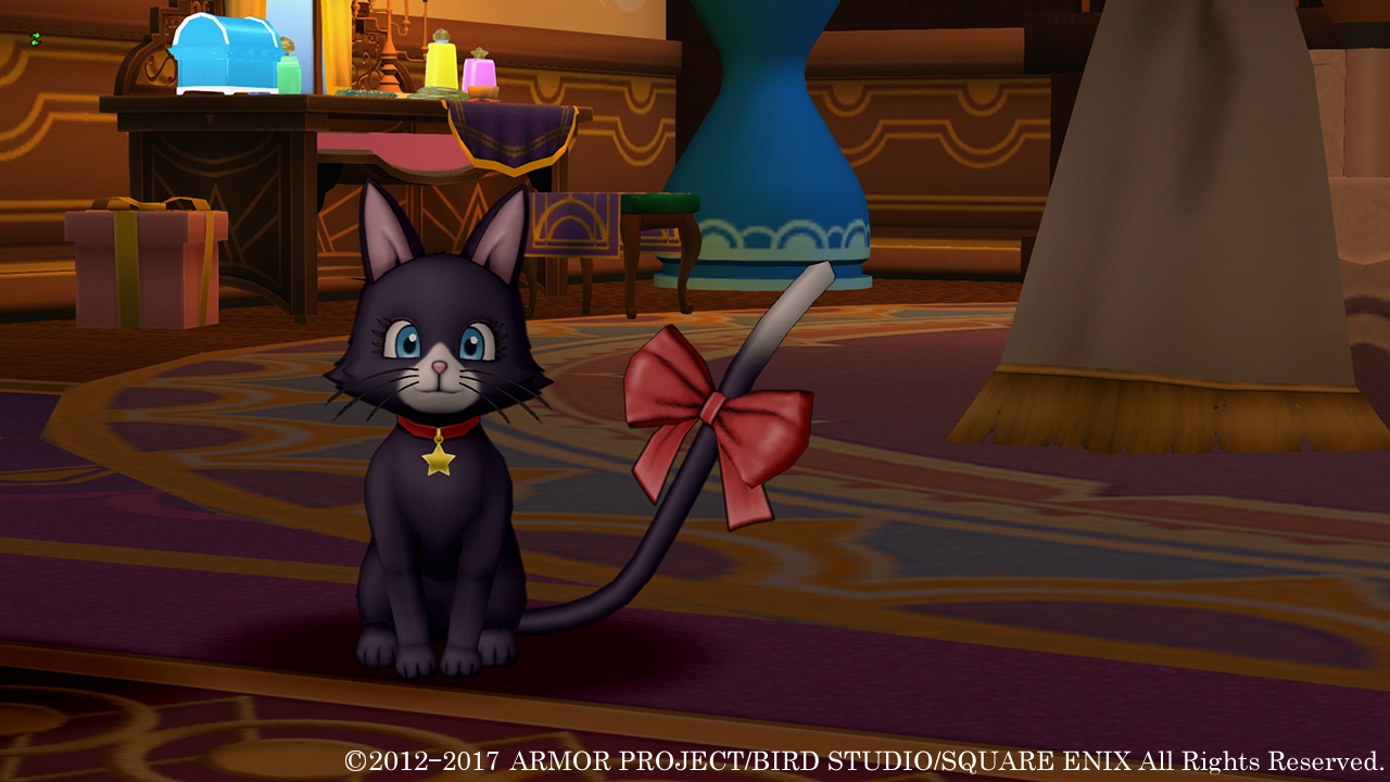 Chacol : le chat malicieux de Meleade. Son collier et son ruban sont assortis aux accessoires de Meleade.