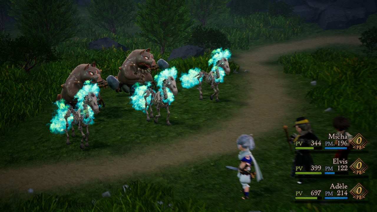 Les amateurs de challenge seront donc servis avec Bravely Default II, mais cette difficulté n’est pas toujours bien gérée, du moins durant les premières heures. Par exemple, en jouant en facile, affronter les ennemis que l’on rencontre directement sur la carte du monde et les donjons peut être une petite promenade de santé, mais les affrontements contre les boss, c’est une autre histoire. Parfois, il sera nécessaire de s’entraîner pour augmenter le niveau des personnages, ainsi que celui de leur classe, et de prendre le temps de bien choisir leurs compétences.
