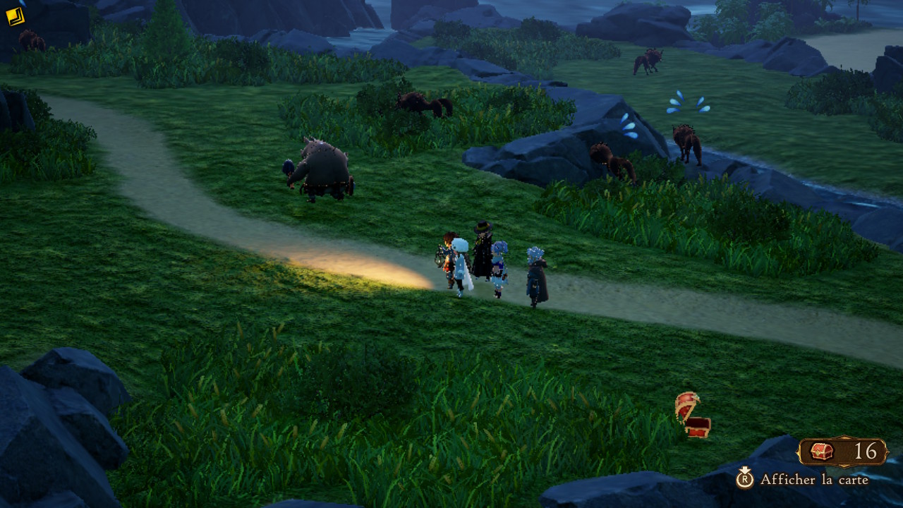 En parlant des classes, le système ne change pas vraiment et permet de choisir une classe principale ainsi qu’une classe secondaire, et de garder toujours les compétences passives qui ont un effet sur les combats, mais aussi sur le terrain. Par exemple, certaines permettent de savoir combien il y a de coffres dans la zone à explorer, d’autres ont un impact sur le soin ou les effets des aptitudes… Pour obtenir de nouvelles classes, il suffit d’affronter les porteurs d’astérisques, comme dans les jeux précédents. La plupart sont des antagonistes, et pour le moment, ceux que l’on a pu affronter avaient chacun leur propre personnalité bien trempée, certains d’entre eux continuant à apparaître au fil de l’aventure et des quêtes.