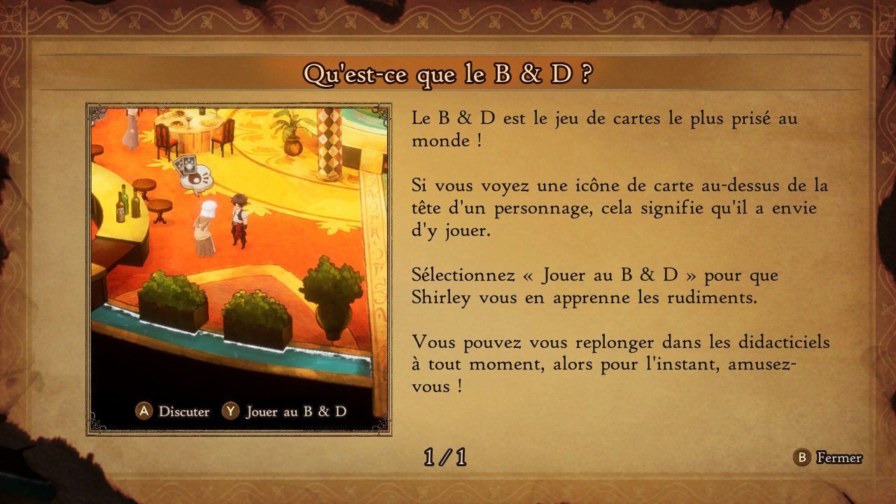 Bravely Default II permet de découvrir un peu plus les facettes du monde d’Excillant grâce à des quêtes secondaires, certaines étant plus importantes que d’autres. Il y a aussi un mini-jeu que l’on peut essayer assez vite dans l’aventure, et que l’on trouvait déjà en finissant la démo finale : le B & D, un jeu de cartes plutôt addictif (mais pas autant que le mini-jeu du masticart de Bravely Second) auquel on peut jouer avec certains personnages. Excillant est donc un monde plutôt soigné malgré ses défauts, sublimé par ses musiques composées par Revo, et même si elles sont moins surprenantes pour un fan de la série ou du compositeur, on trouve déjà plusieurs surprises au niveau des thèmes de boss et de certaines musiques évolutives. En effet, si certains morceaux reviennent, par exemple dans des donjons, Revo a eu la formidable idée de les changer pratiquement à chaque fois en ajoutant des sons supplémentaires pour éviter d’être lassé. Cela permet donc un peu d’oublier certains aspects un peu trop old-school du jeu et le manque de fonctionnalités qui auraient pu rendre l’aventure plus agréable.