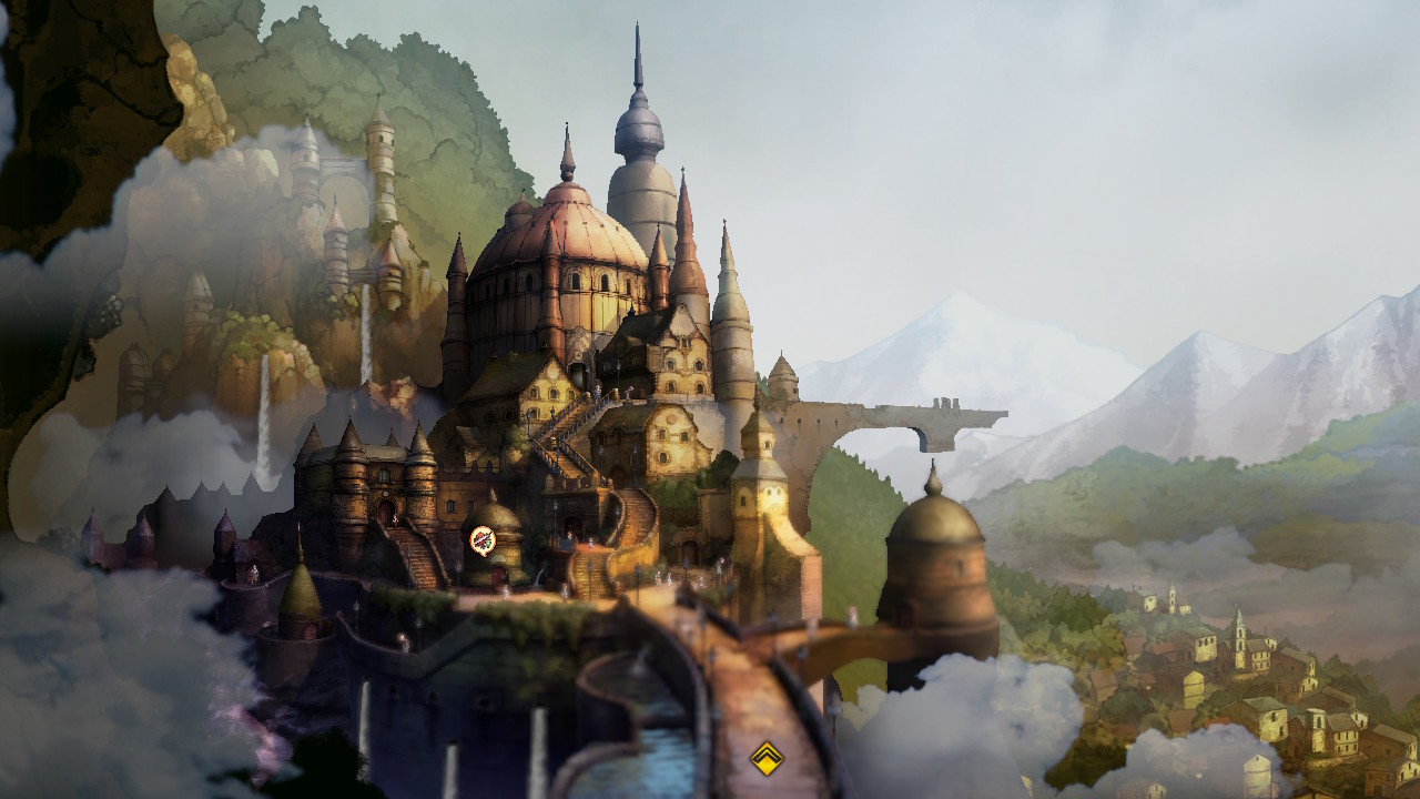Outre tous ces petits éléments perfectibles, Bravely Default II a un atout de taille : ses superbes villes, dessinées à la main par un seul artiste : Kiyoshi Arai. Un nom qui n’est pas inconnu pour les fans de Final Fantasy, puisqu’il s’est occupé du design des machines de plusieurs épisodes comme le remake de Final Fantasy III, Final Fantasy XII et Final Fantasy XIV. Il a longtemps travaillé pour Square Enix, avant de quitter le studio il y a bientôt dix ans, mais continue donc d’être impliqué dans certaines productions. Si les décors de la carte du monde et des donjons peuvent manquer de personnalité, cela n’est donc pas le cas des villes, qui sont peut-être l’attrait principal du jeu avec un autre aspect sur lequel on reviendra plus tard : les musiques.