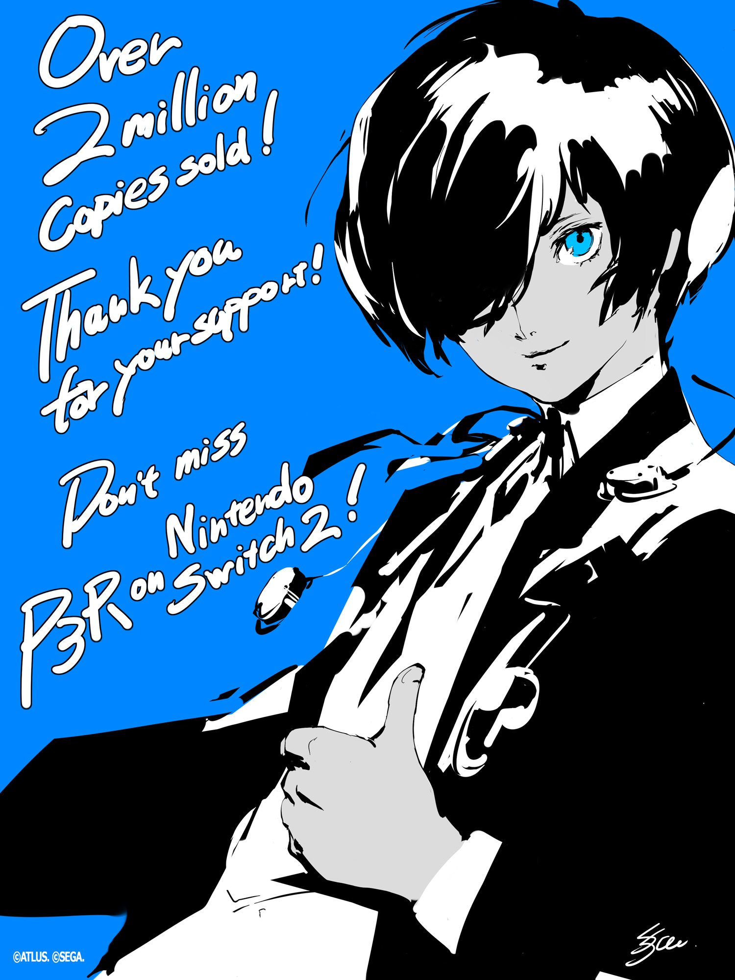 Atlus a aussi annoncé récemment que Persona 3 Reload a dépassé les 2 millions d’exemplaires vendus dans le monde. Pour l’occasion, une nouvelle illustration de Soejima a été partagée :