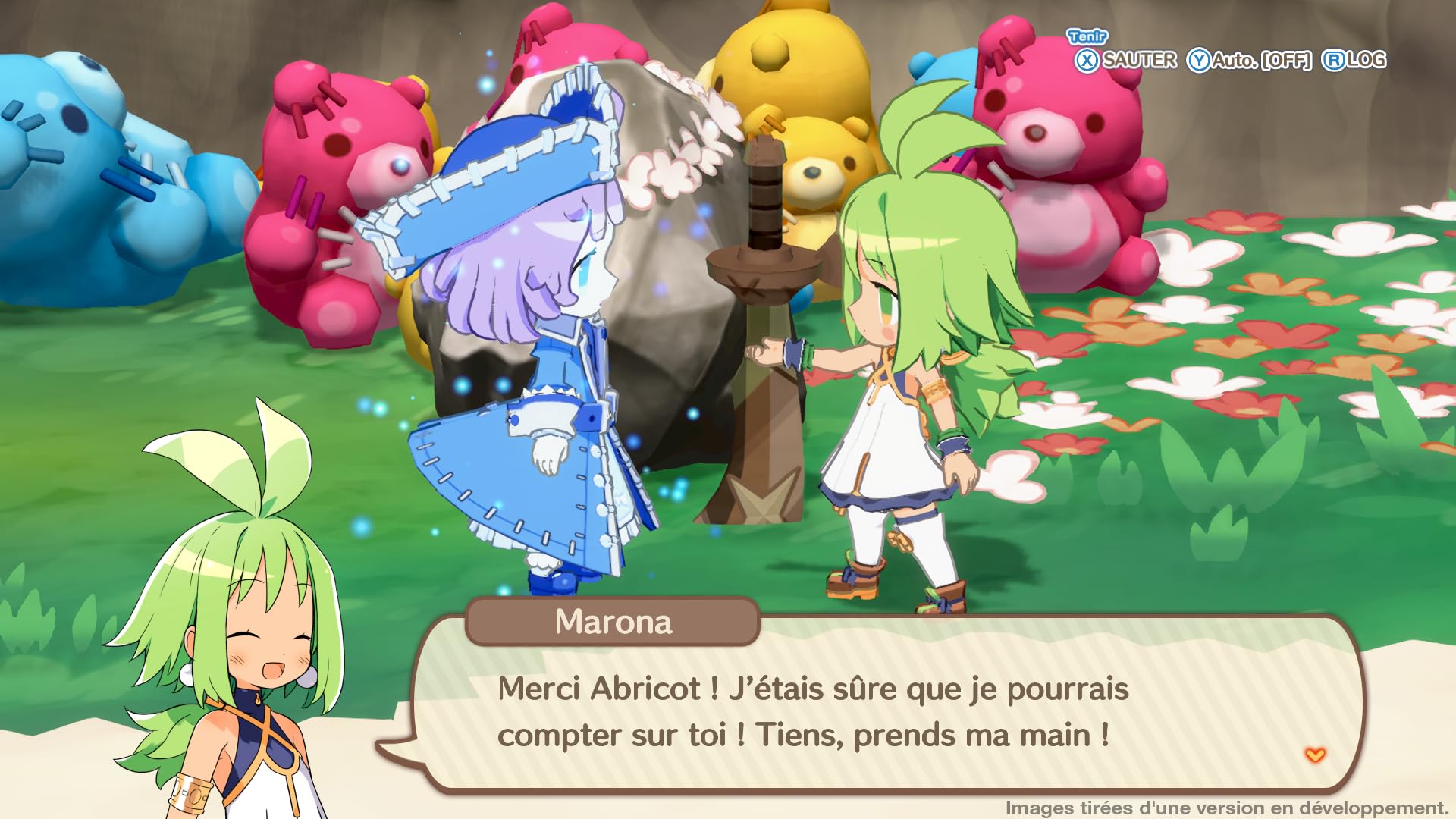 Par ailleurs, NIS America souligne qu’après avoir terminé l’aventure principale de Phantom Brave : The Lost Hero, six personnages provenant d’autres titres de Nippon Ichi Software apparaîtront dans des « Postludes ». On retrouvera notamment Laharl, Valvatorez et Pirilika de la série Disgaea, mais aussi Priere de La Pucelle Tactics, Cornet Espoir de Rhapsody : A Musical Adventure et Asagi.