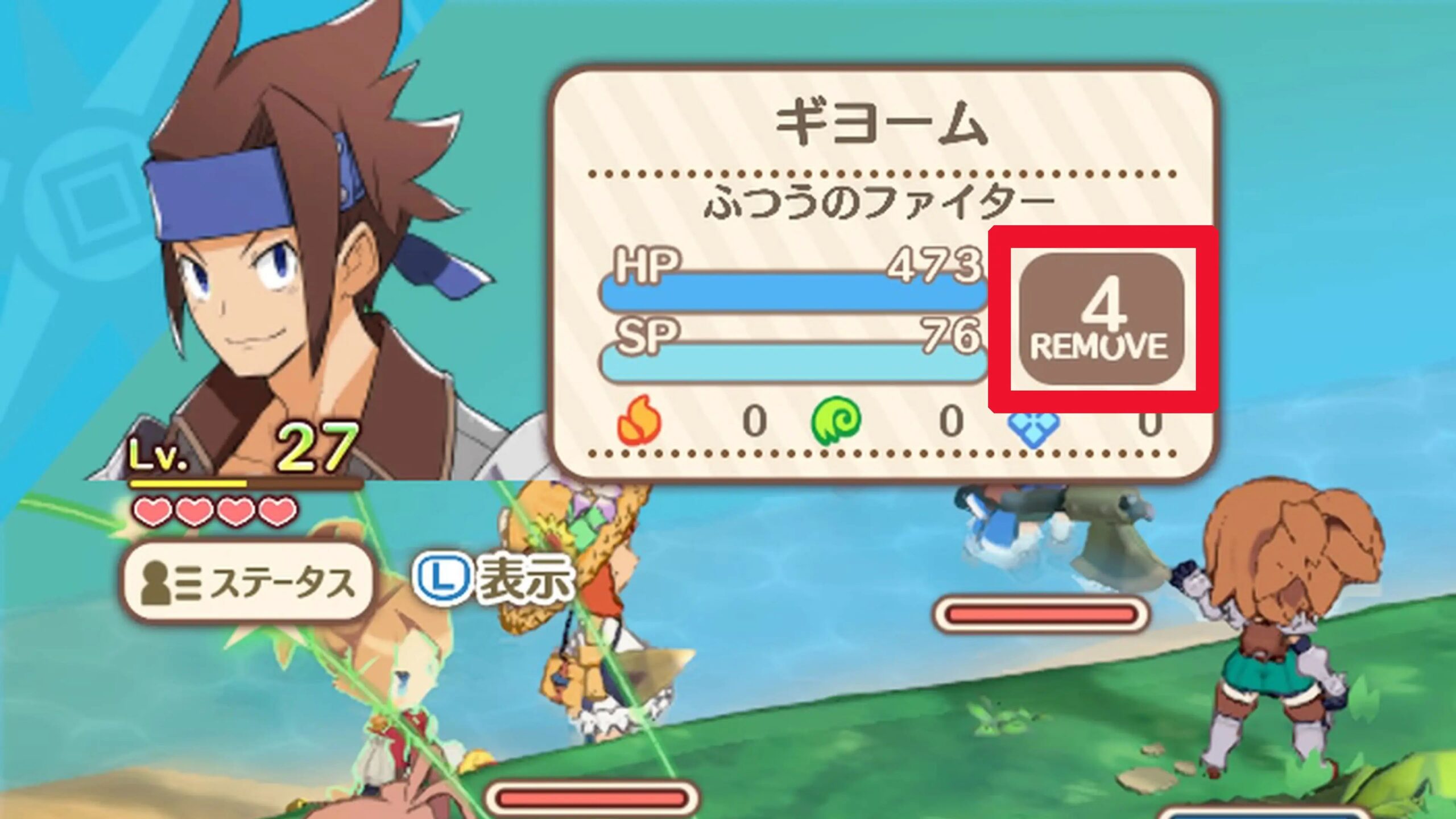 En effectuant un Combinage avec une roche, la défense du personnage augmentera mais sa vitesse diminuera. Avec une arme en revanche, sa puissance d’attaque sera renforcée. Bref, suivant la cible du Combinage, vos personnages pourront bénéficier de diverses caractéristiques propres à la situation.