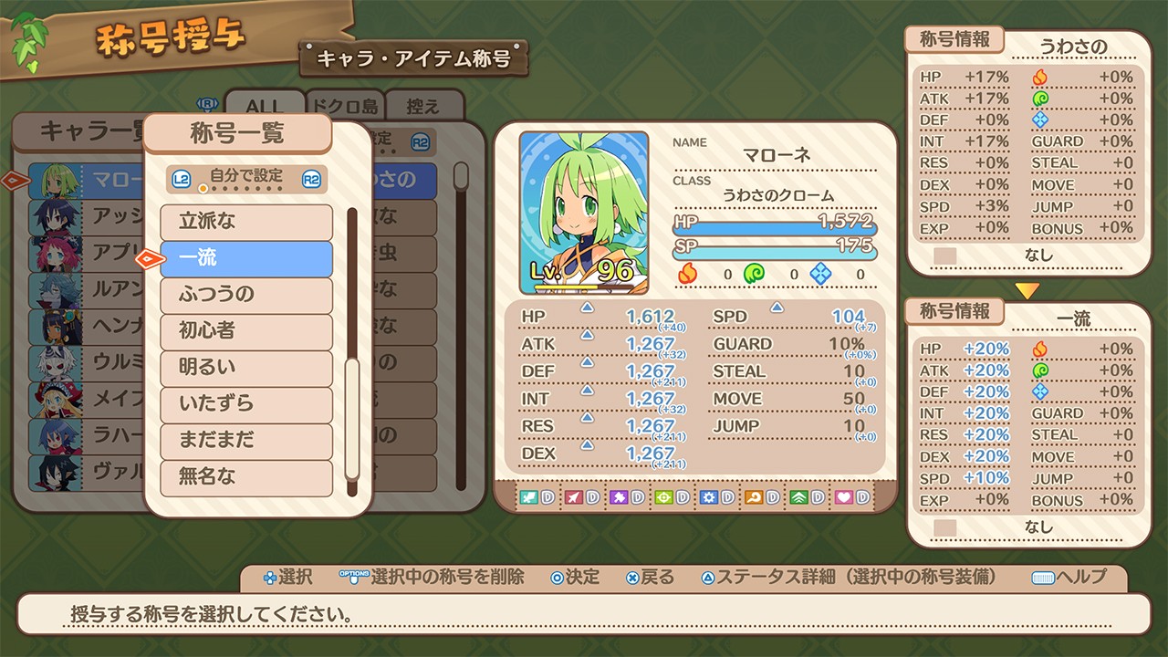 Les Titres sont des étiquettes transférables qui affectent l’état d’une unité. Chaque unité ou objet possède un Titre dès le départ, et chaque Titre a des effets différents. Vous pouvez attribuer des Titres à votre guise. Par conséquent, si vous obtenez un objet doté d’un Titre puissant, veillez à essayer de le transférer à quelque chose d’autre !